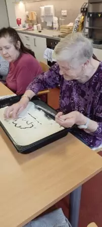 Vyzkoušeli jsme u nás v Senevida Nepomuk malování do mouky...