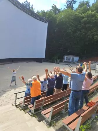 Cvičení klientů Senevida Boskovice v letním kině