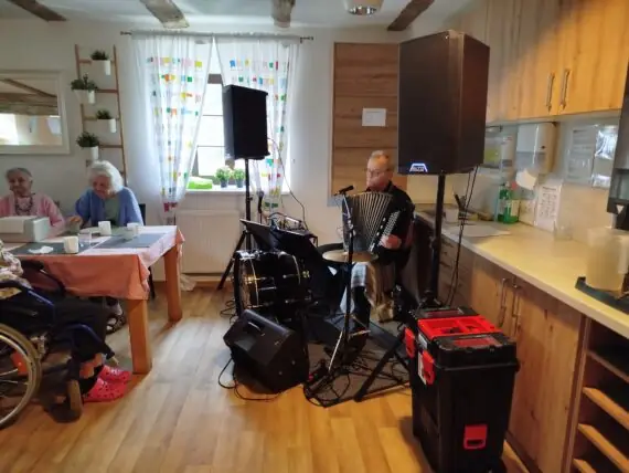 Vystoupení s harmonikou.