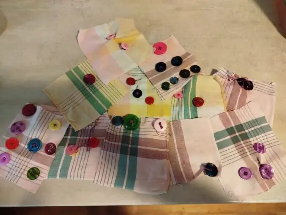 Přišívání knoflíků.