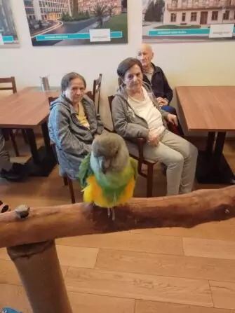 V Senevida Sluštice nám návštěva papoušků vždy udělá velikou radost....