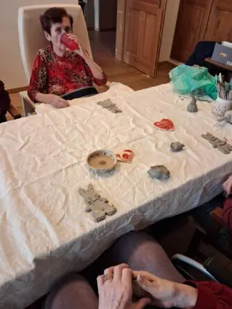 Pravidelně k nám jezdí paní s tvořením z keramické dílny....