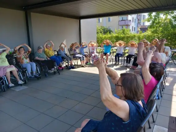 Klienti z Senevida Zátiší jsou po cvičení s lektorkou Veronikou...