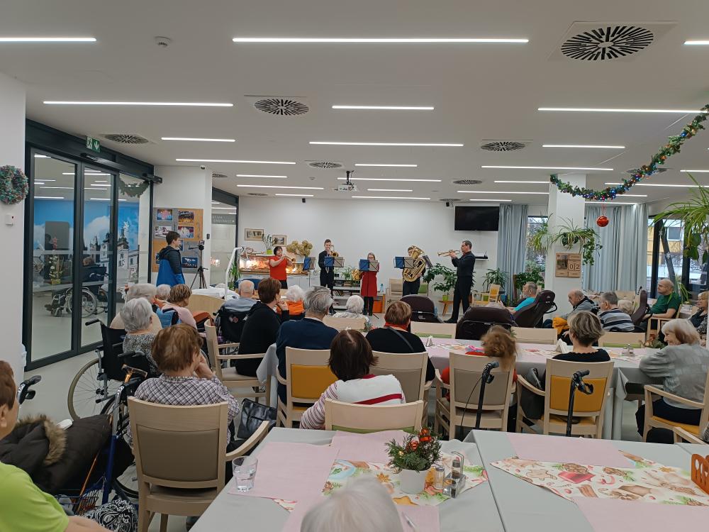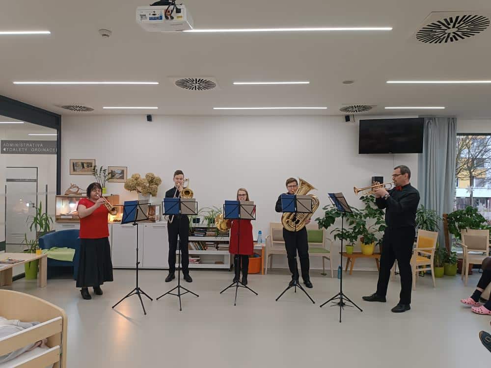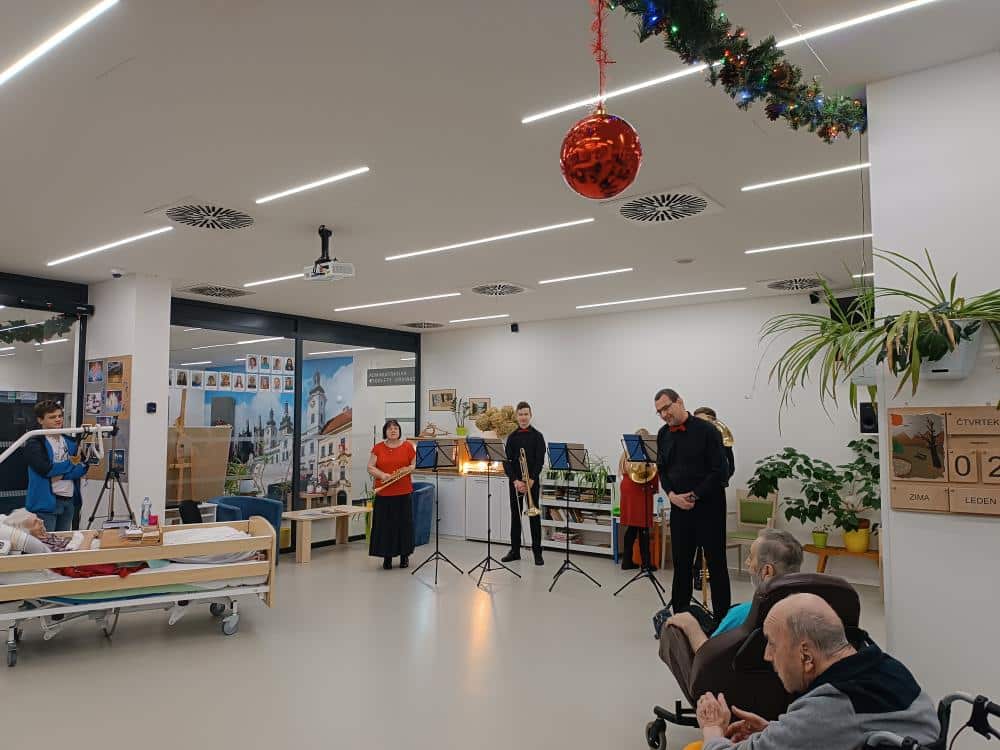 K příležitosti začínajícího roku jsme ve spolupráci s rodinou našeho klienta uspořádali novoroční koncert v našem SeniorCentru Hradec Králové. Kapela BRASS BAND – kvinteto ze ZUŠ z Police nad Metují nám zahrála klasické písně na žesťové nástroje. Byl to krásný zážitek, který naši klienti velmi ocenili a užili si ho naplno.