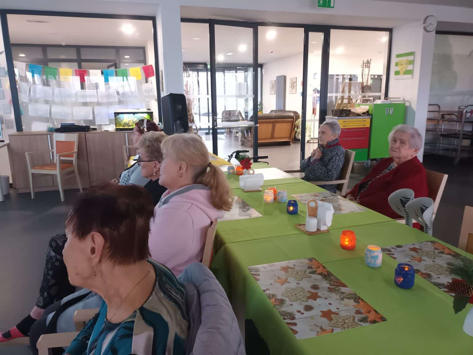 Atmosféru tohoto setkání dotvořilo světlo svíček, které jsme v tento den nemohli opomenout. Plápolající světélko však u nás vycházelo ze svíček elektronických. Svíčku spolu s originální lucerničkou si mohli účastníci programu odnést do svých pokojů. Tento malý dárek byl pro ně o to cennější, že na výrobě lucerniček se podíleli klienti z jiných oddělení domova.