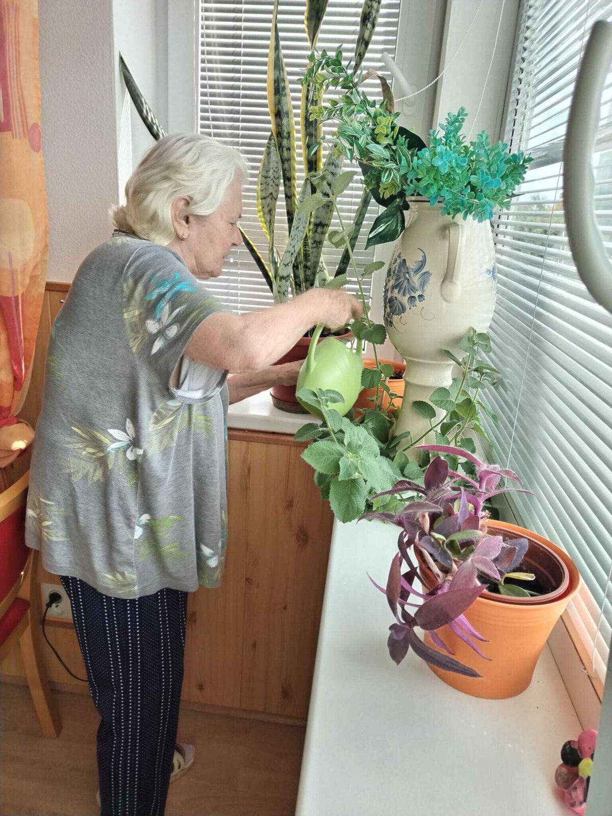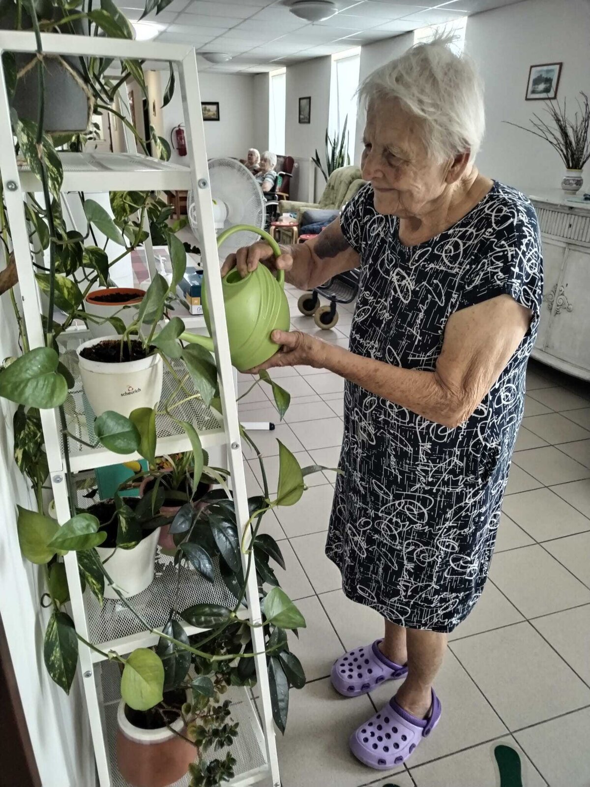 Určitě jste si všimli, že se to u nás v Domově zelení jen hýří. Aby byla stále zdravá a lahodila oku, je potřeba o ni pečovat. Úplně nejlépe s láskou. Proto pravidelně zaléváme květiny nejen uvnitř, ale také venku.