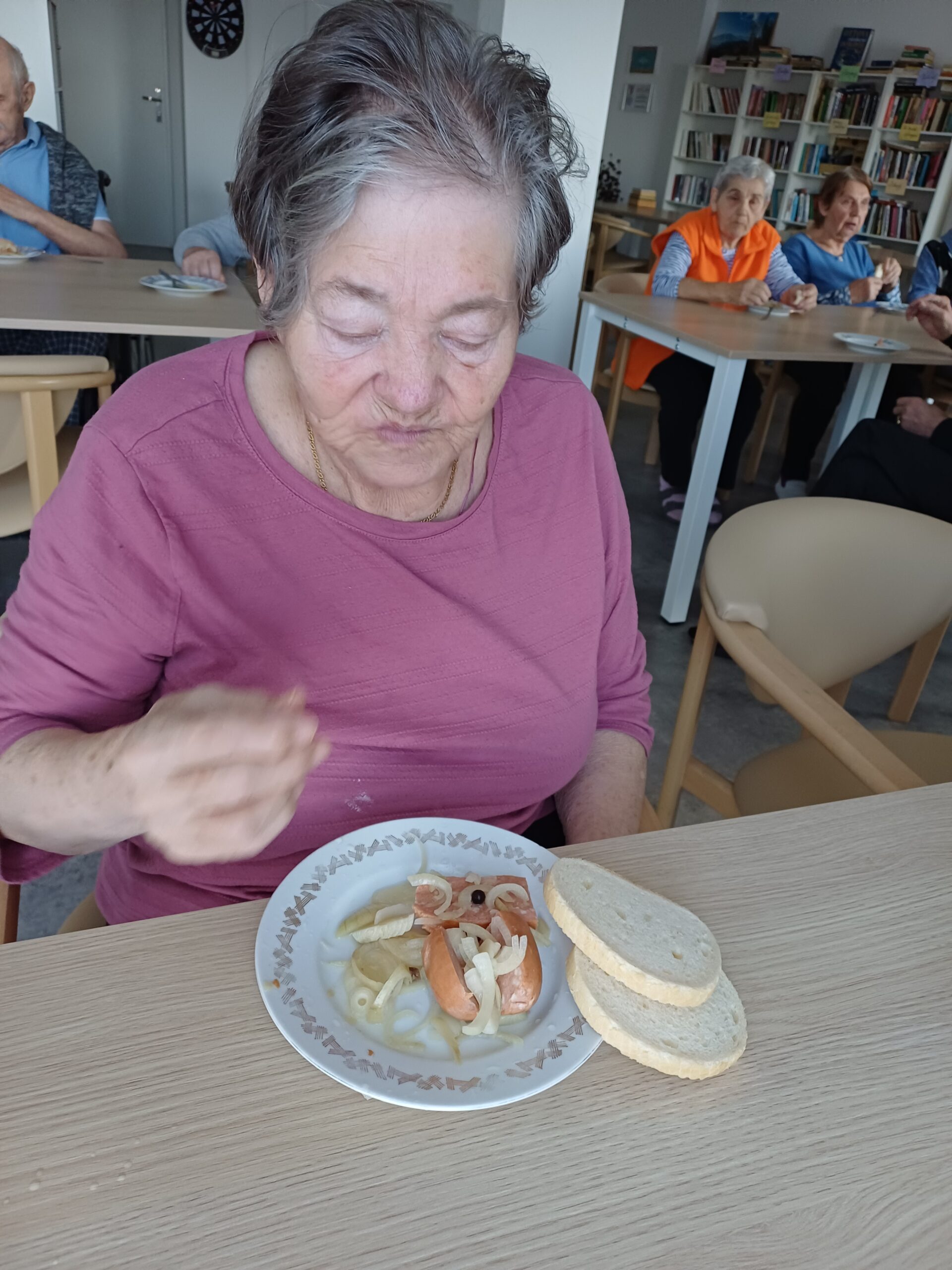 S klienty jsme konečně vytáhli z lednice utopence, které jsme společně nakládali před dvěma týdny. Po sladké snídani to byla rapidní změna chutě. Utopenci dopadli na jedničku a ve sklenici nezbyl ani jeden. Na kyselé dobrotě si pochutnali i klienti na pokojích, kteří se společné degustace nemohli nebo nechtěli účastnit.