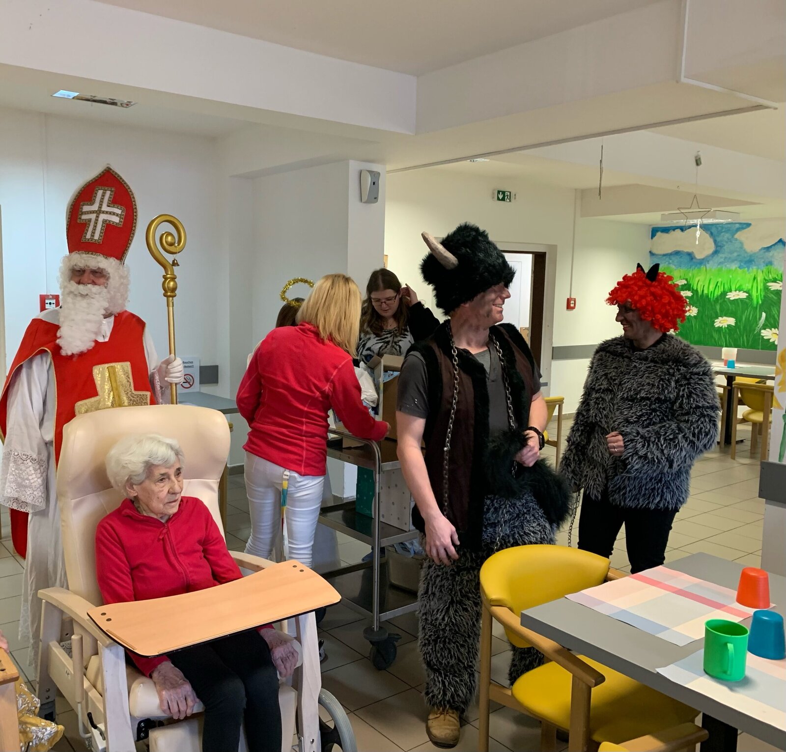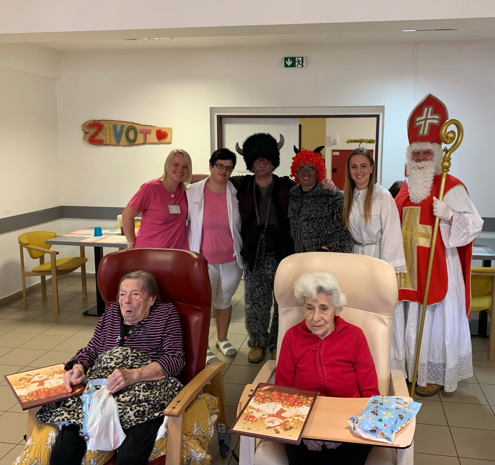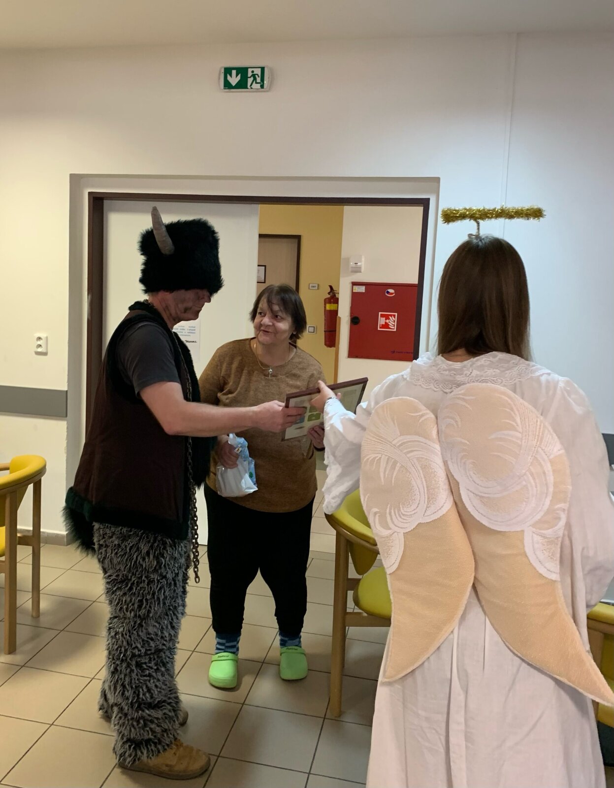 Nás tedy rozhodně ne. Ba naopak jsme dostali od téhle party samé dobroty. Mikuláš, anděl a 2 čerti navštívili každé patro. Odvážlivci jim řekli i básničku. Znáte ještě nějakou?