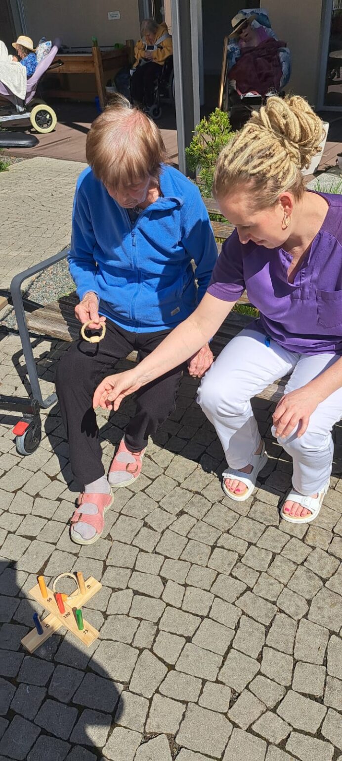Jedno ze slunečných odpolední u nás v domově se neslo ve znamení radosti a smíchu. Naši klienti si užili bohatý program – od zábavných sportovních her až po zooterapeutická setkání s přátelskými zvířaty.