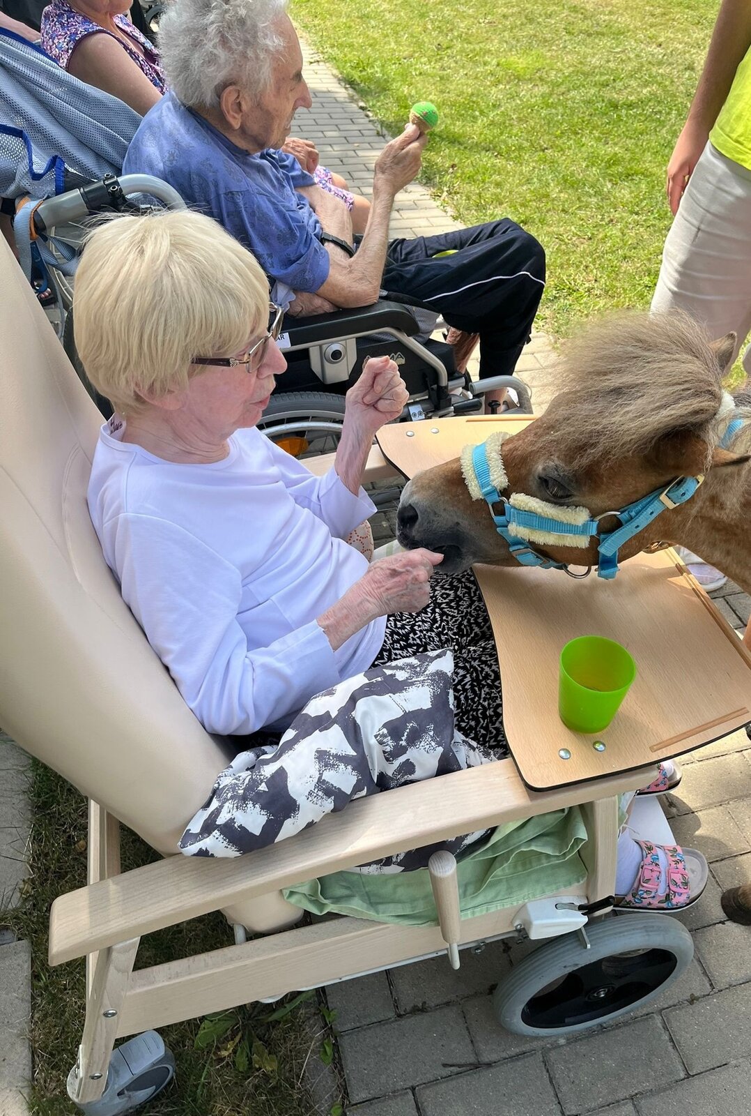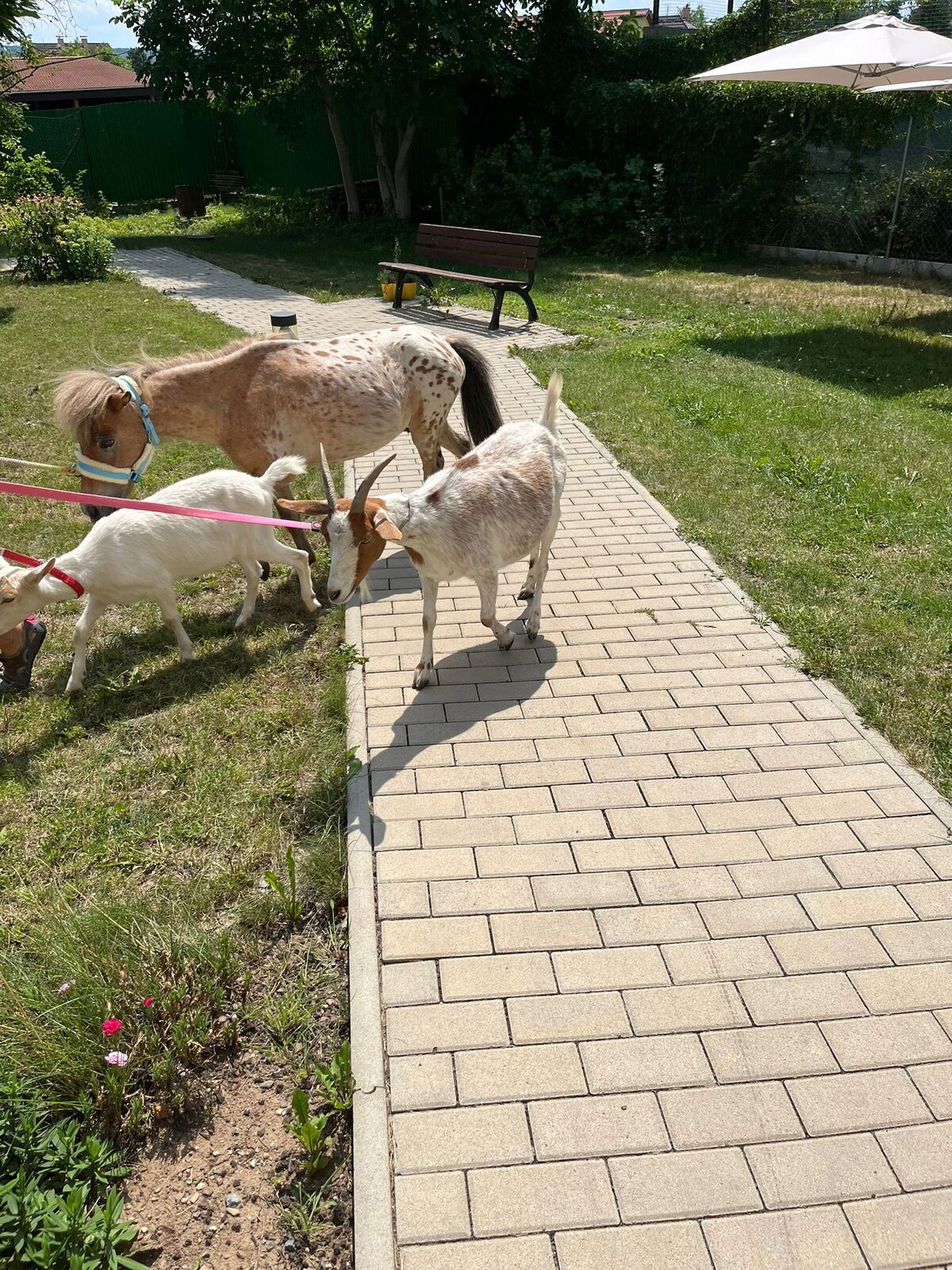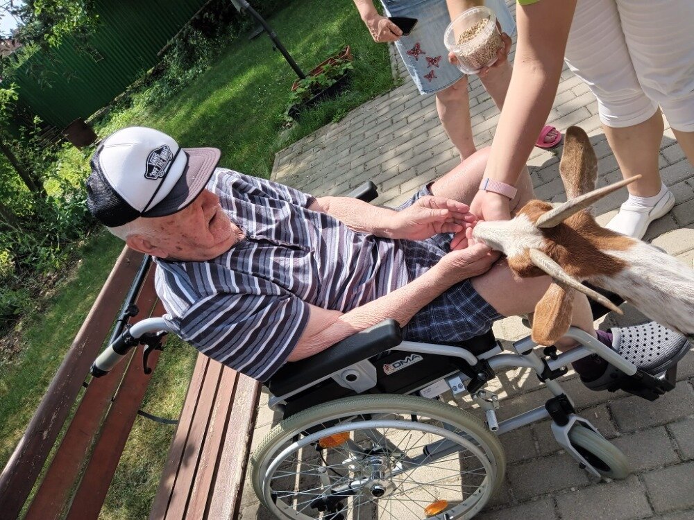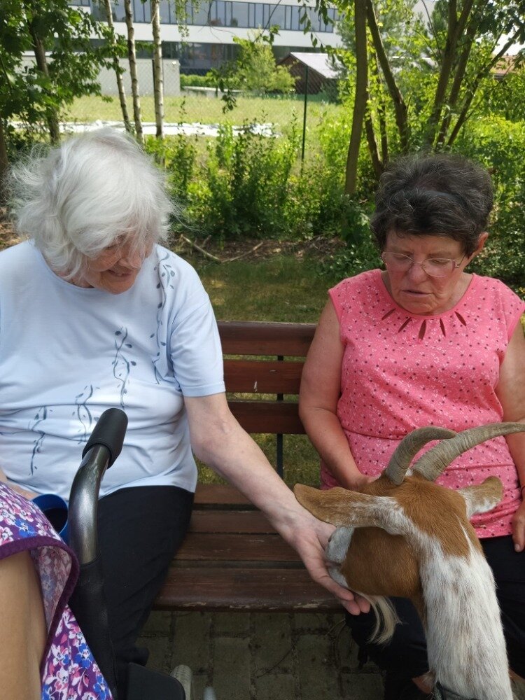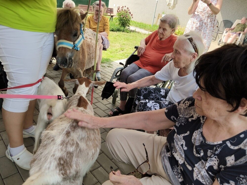 Krásné letní dny v Senevida Modřany trávíme nejčastěji na zahrádce. Společnost nám přijela dělat zvířata z Boušic s majitelkou Evou. O zábavu bylo opět postaráno, koník Frodo zaměstnal ne jednoho klienta a snědl, na co přišel, ale ani kozy Áňa a Máňa nezůstaly pozadu. Fena Kleopatra chvilkami vychutnávala odpolední pohodu na trávníku.