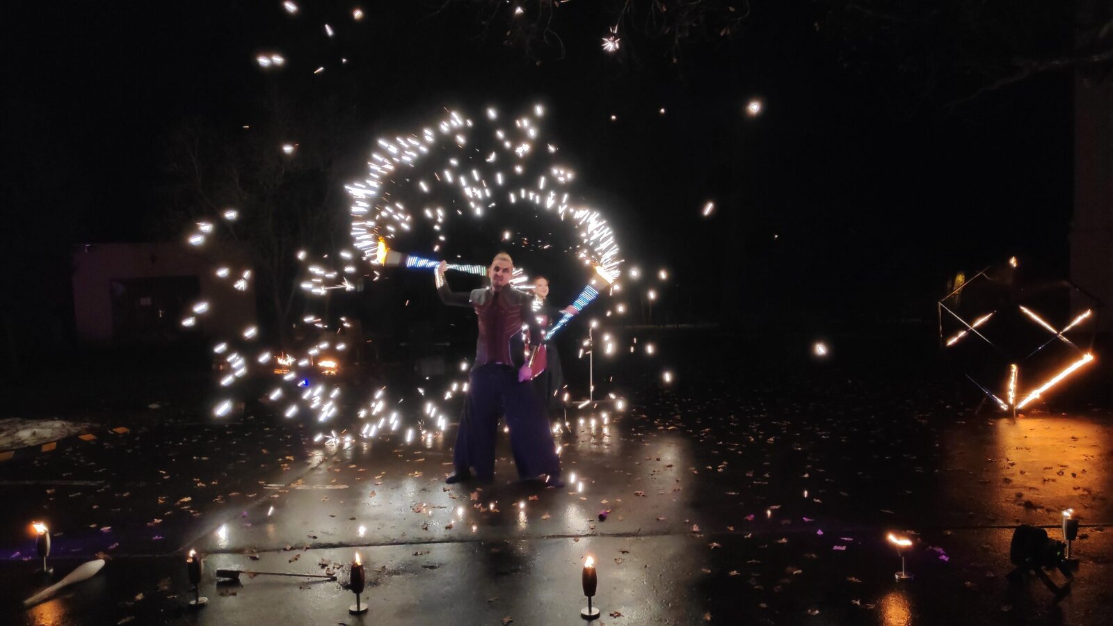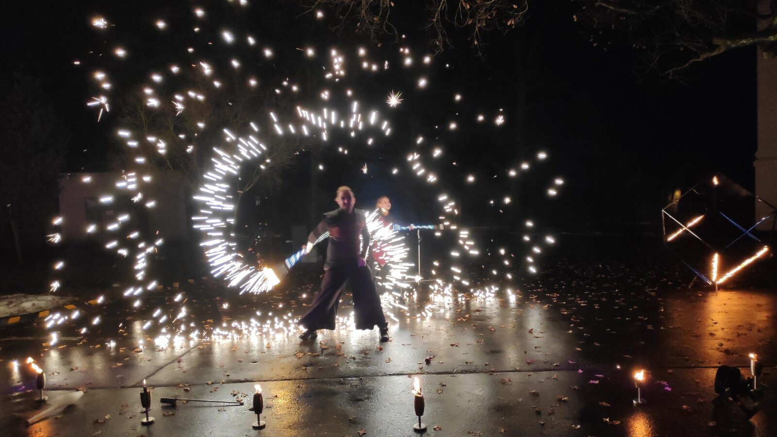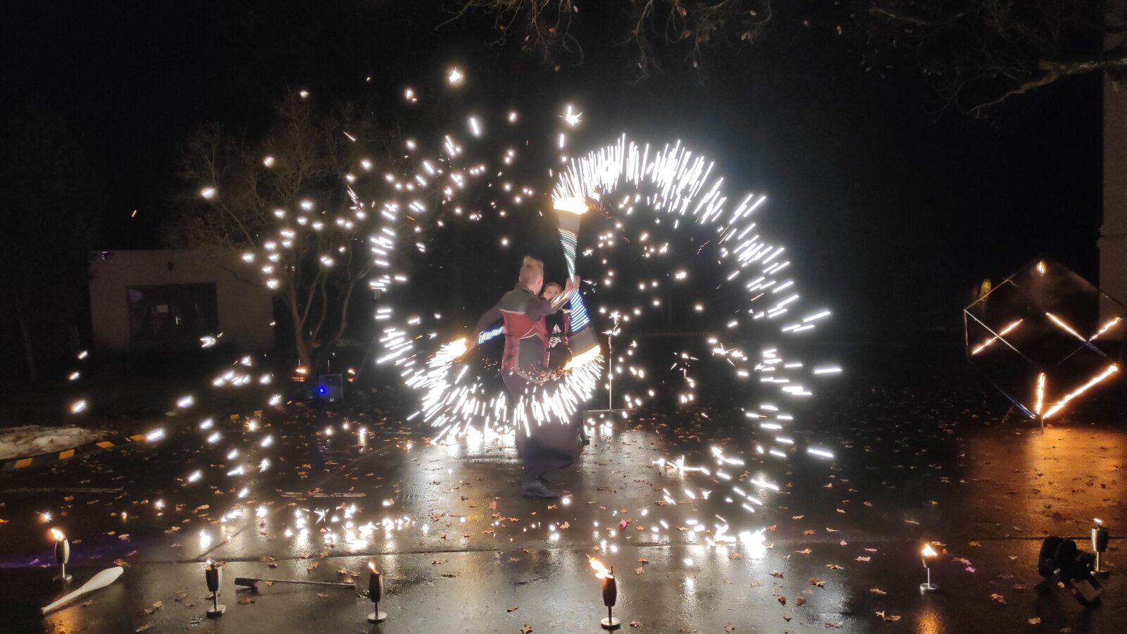 Luxusní ohňovo-světelné vystoupení jsme zažili u nás v Senevida Pyšely. Pozvali jsme lidi z širokého okolí, abychom tu parádu mohli sdílet společně. Velice působivá, hudbou podbarvená fireshow.