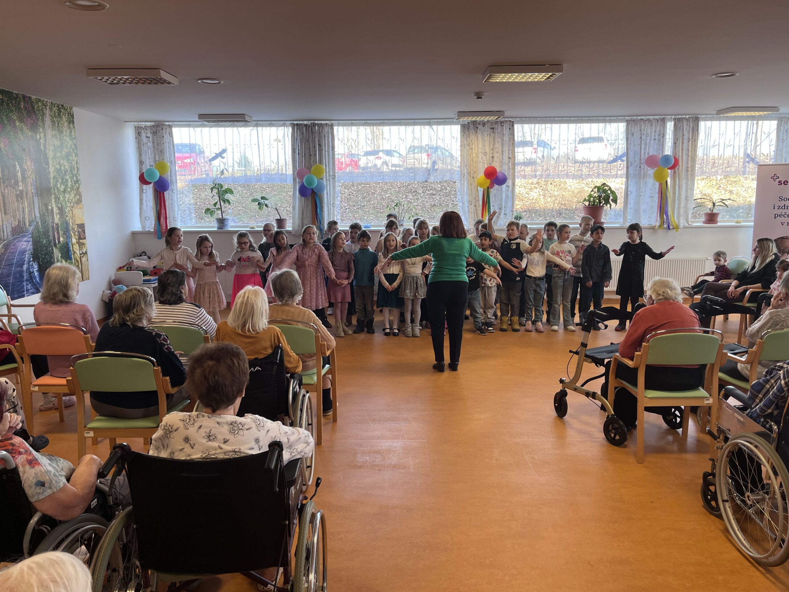 V pátek 6. března k nám zavítaly děti ze ZŠ Terezín, které našim klientkám zpříjemnily dopoledne svým hudebně-tanečním vystoupením. Jejich písničky rozzářily úsměvy na tvářích všech přítomných a vytvořily krásnou slavnostní atmosféru.