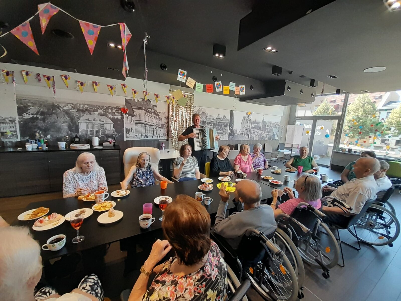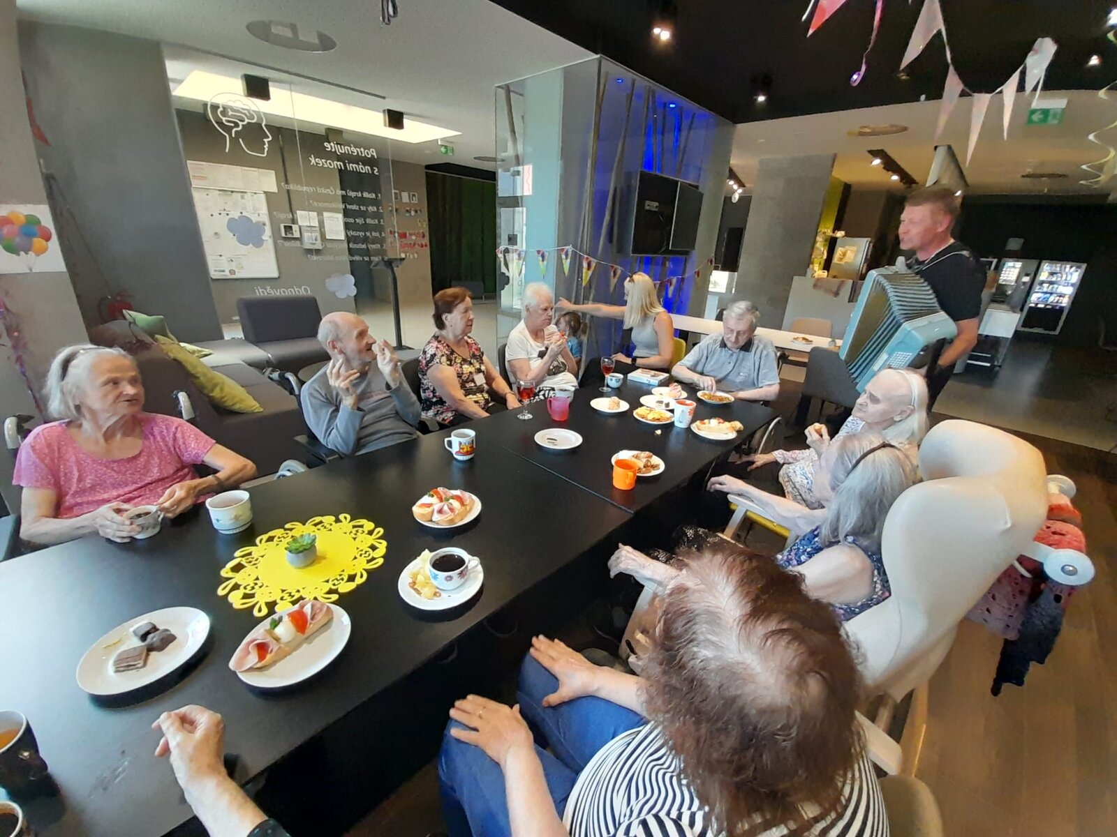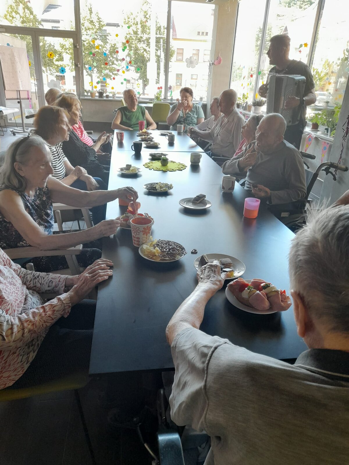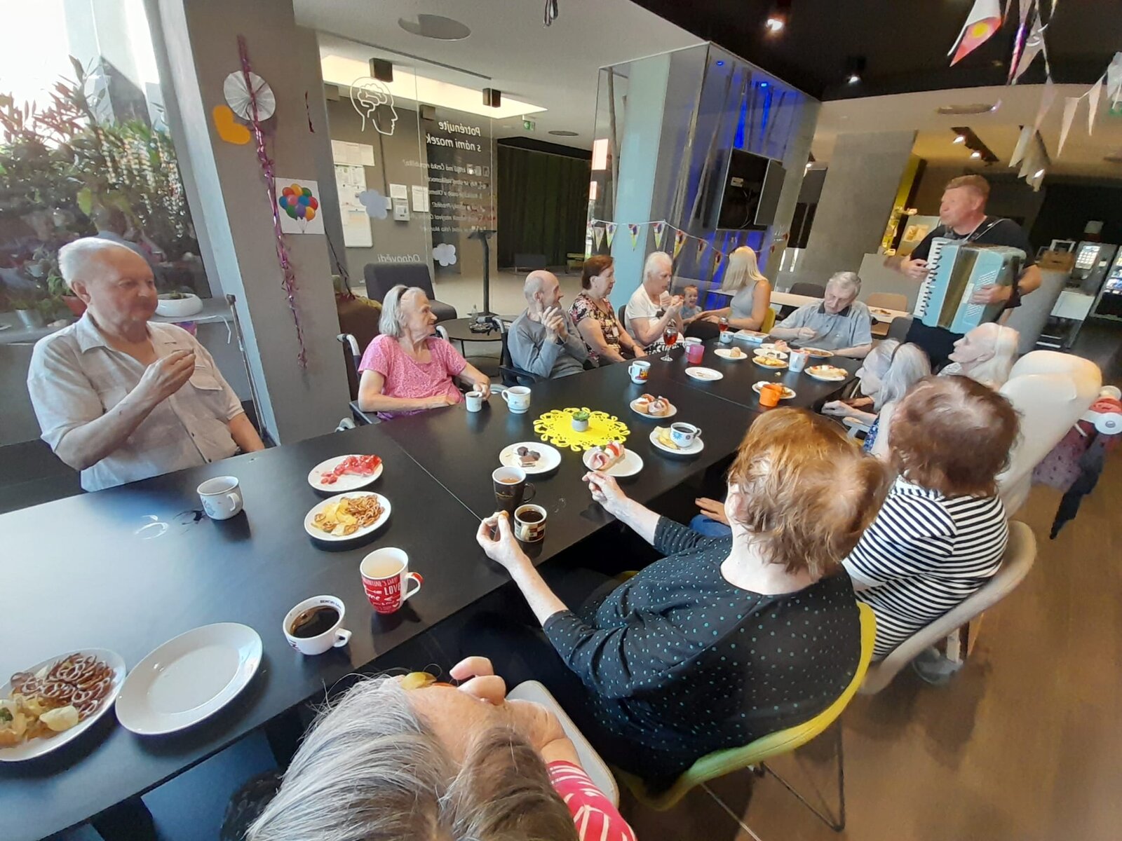 Tentokrát jsme slavili společně s klienty narozeniny. Krásné kulatiny jsme oslavili společně se skvělým harmonikářem a zpěvákem, panem Pavlem. Nálada byla skvělá a všichni jsme si společně zazpívali. 🎵🎶🎼 Pohoštění bylo bohaté. ☕🥧🍰🥪🍕"