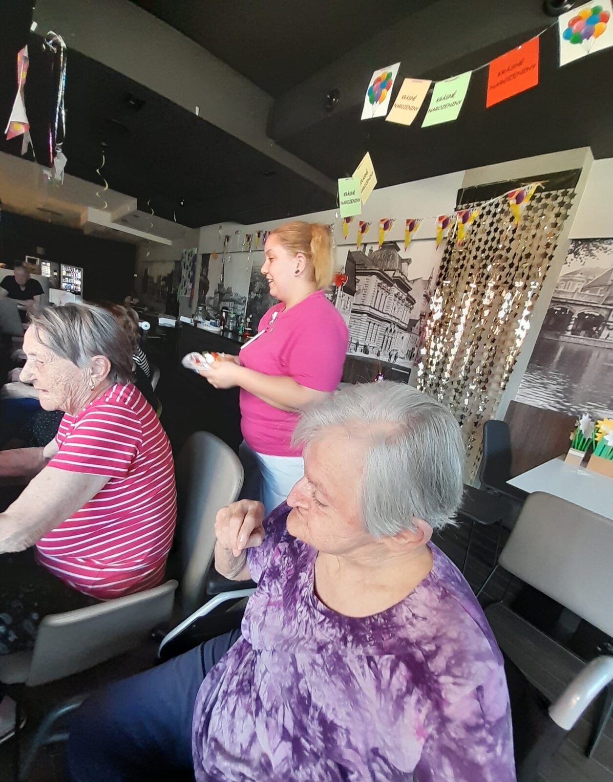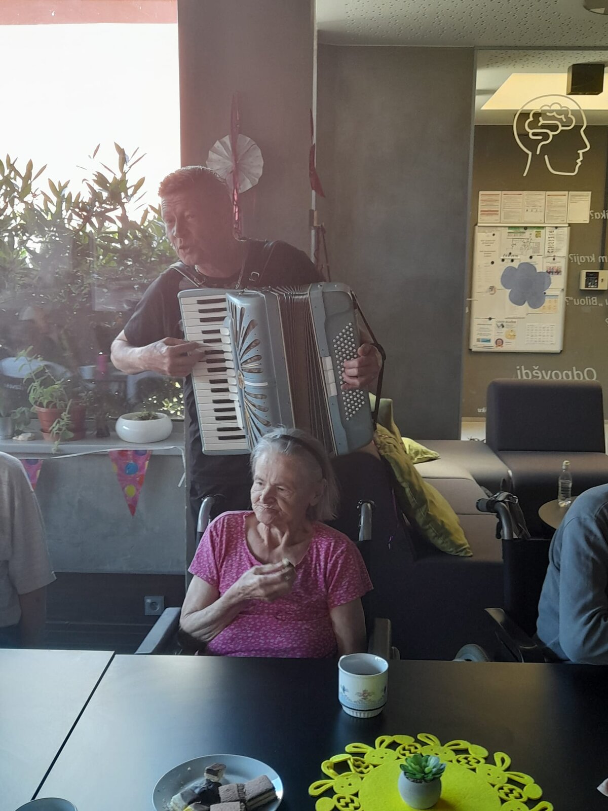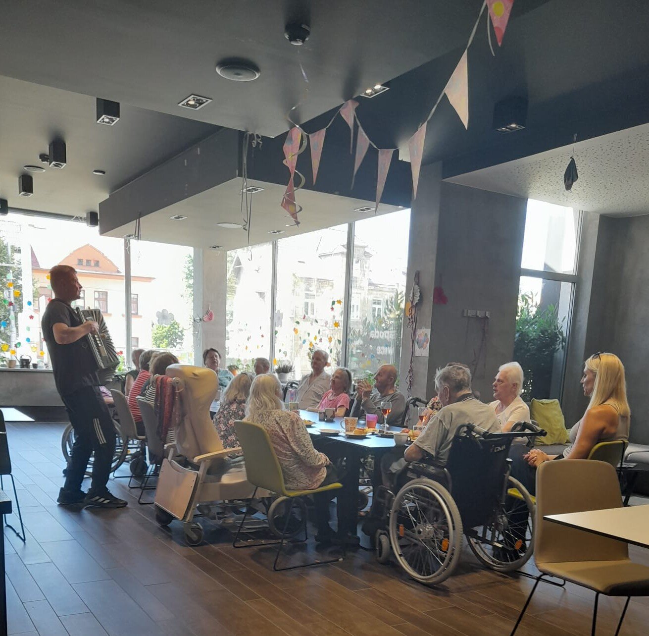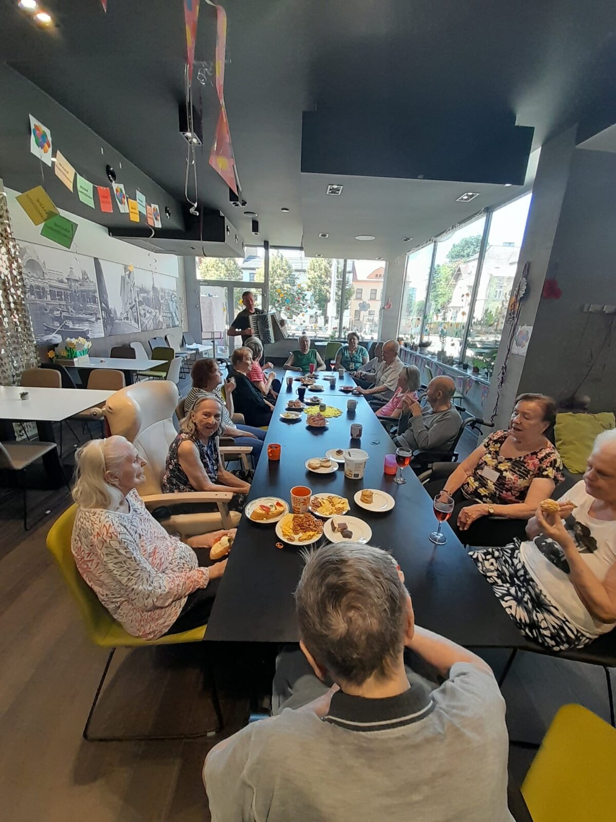 Tentokrát jsme slavili společně s klienty narozeniny. Krásné kulatiny jsme oslavili společně se skvělým harmonikářem a zpěvákem, panem Pavlem. Nálada byla skvělá a všichni jsme si společně zazpívali. 🎵🎶🎼 Pohoštění bylo bohaté. ☕🥧🍰🥪🍕"