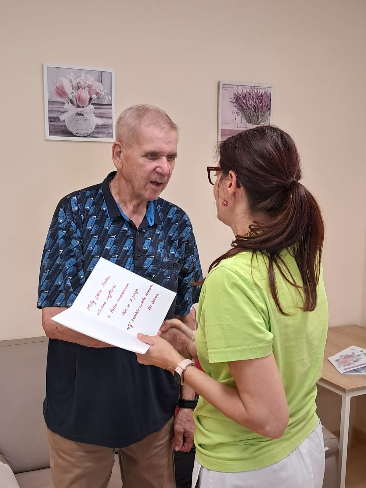V ALHEIMER HOME Ostrava opět proběhla oslava narozenin klientů, tentokrát narozených v srpnu. Všichni jsme si to společně užili a pak jsme si i zazpívali několik písniček na přání.
