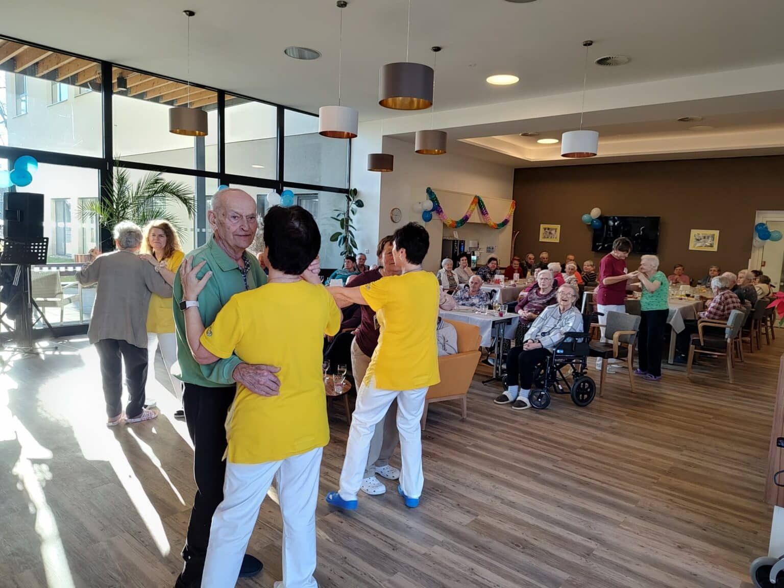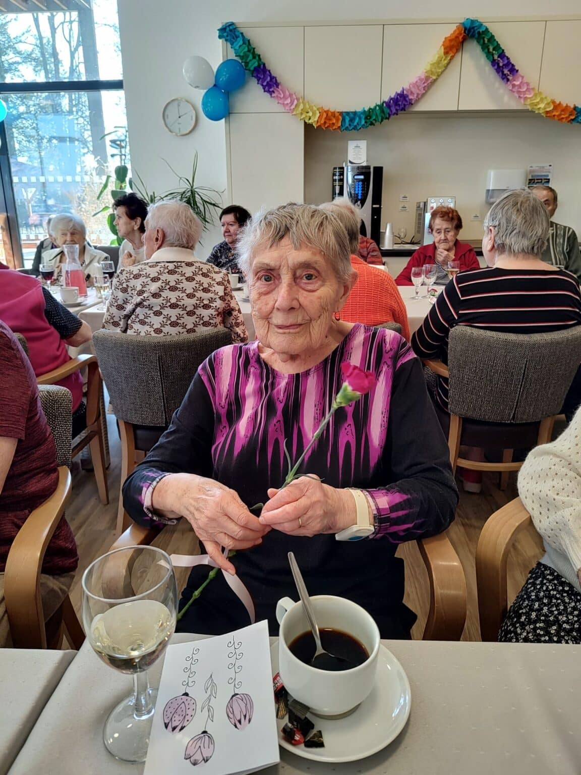 Uplynulý týden prožili klienti SeniorCentra Telč odpoledne plné zábavy a hudby. U příležitosti oslavy narozenin jsme se sešli u kávy a dezertu ve vestibulu u recepce. Oslavencům byla předána krásná kytička a narozeninové přání, které vyrobily děti.