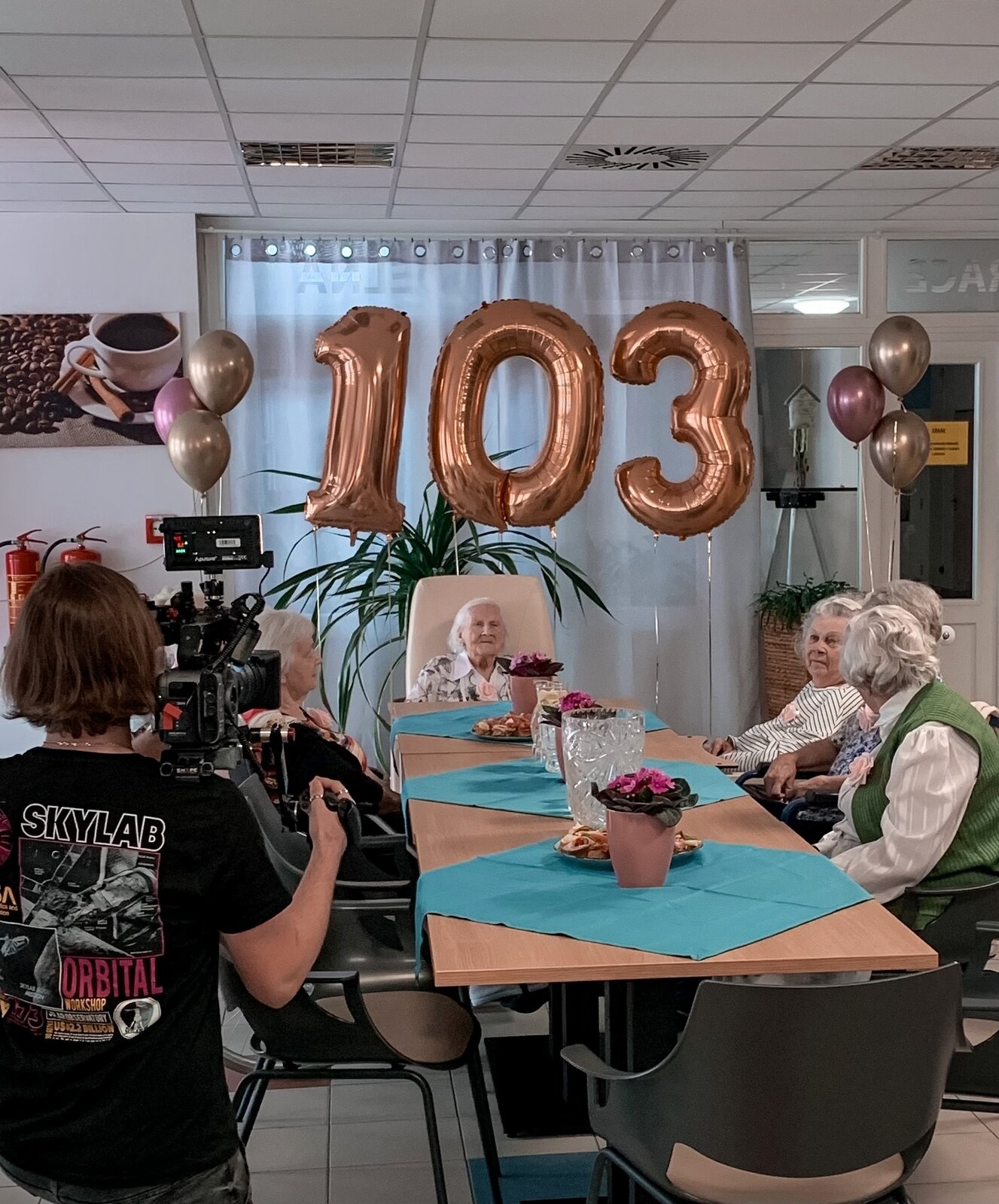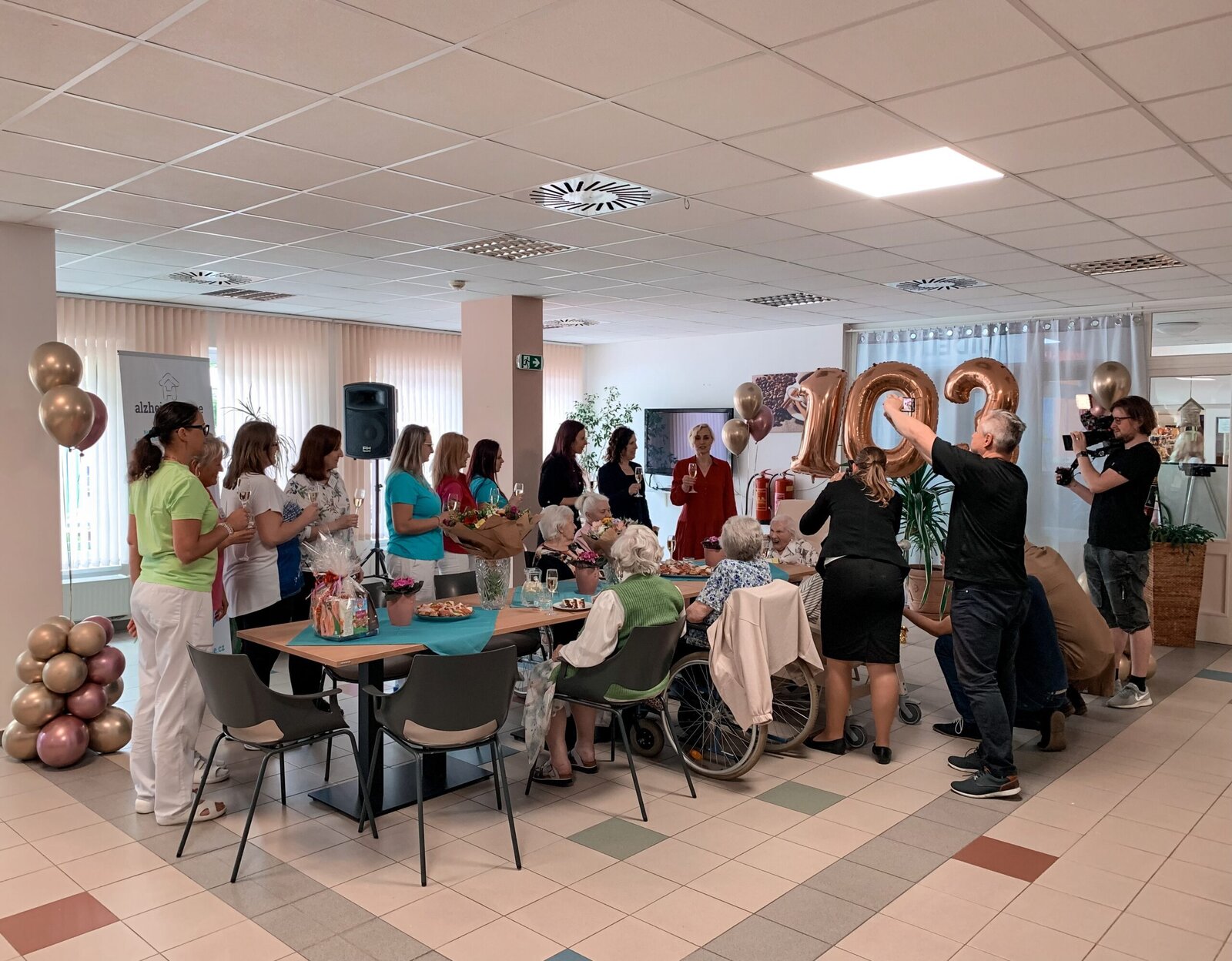 Už to jsou 3 roky, co se naší milé sousedce Věrušce počítají léta za pomoci 3 čísel. To jsme nemohli nechat bez oslavy. Část se konala za přítomnosti paní primátorky a televizního štábu. Po dostatečném vytančení jsme se přesunuli na patro, kde jsme si ještě pochutnávali na dobrotách z oslavy. A ve večerních novinách se pak někteří z nás zahlédli:https://tn.nova.cz/zpravodajstvi/clanek/554990-103leta-jubilantka-nikdy-nikomu-neublizila-gratulovala-ji-i-primatorka