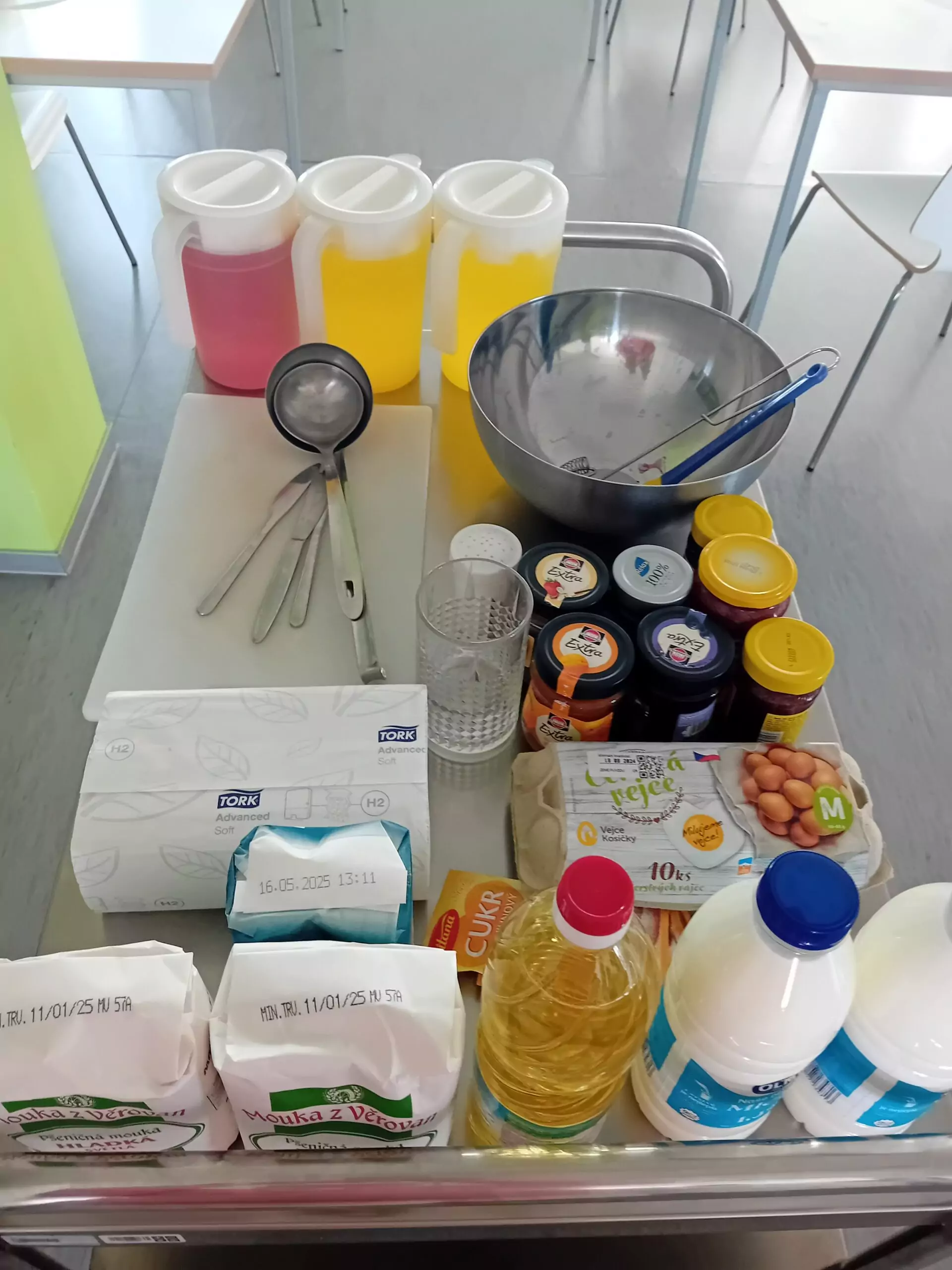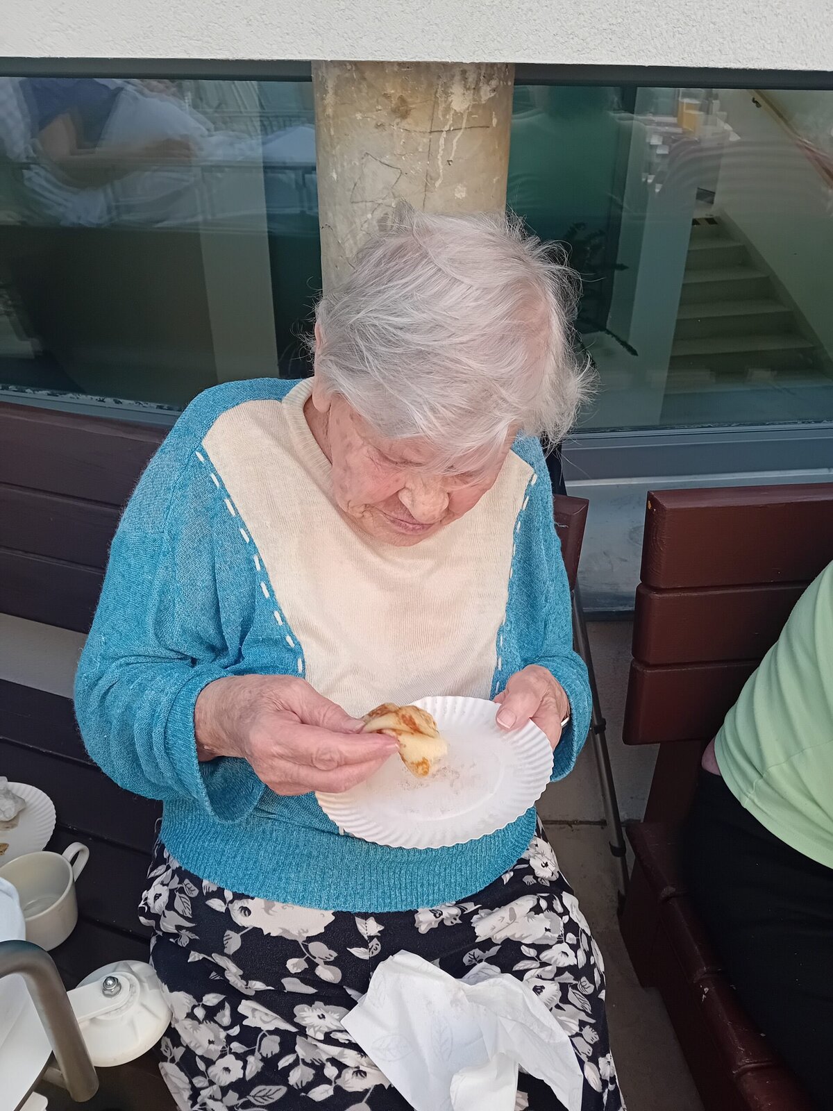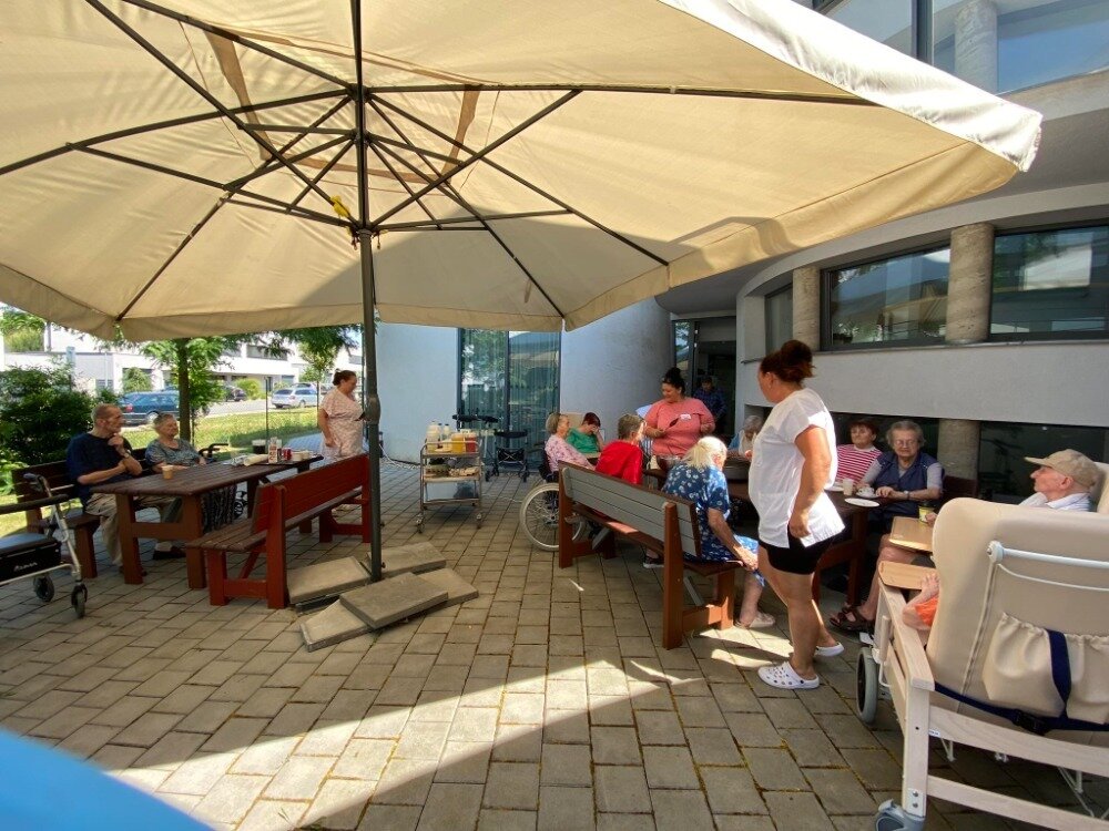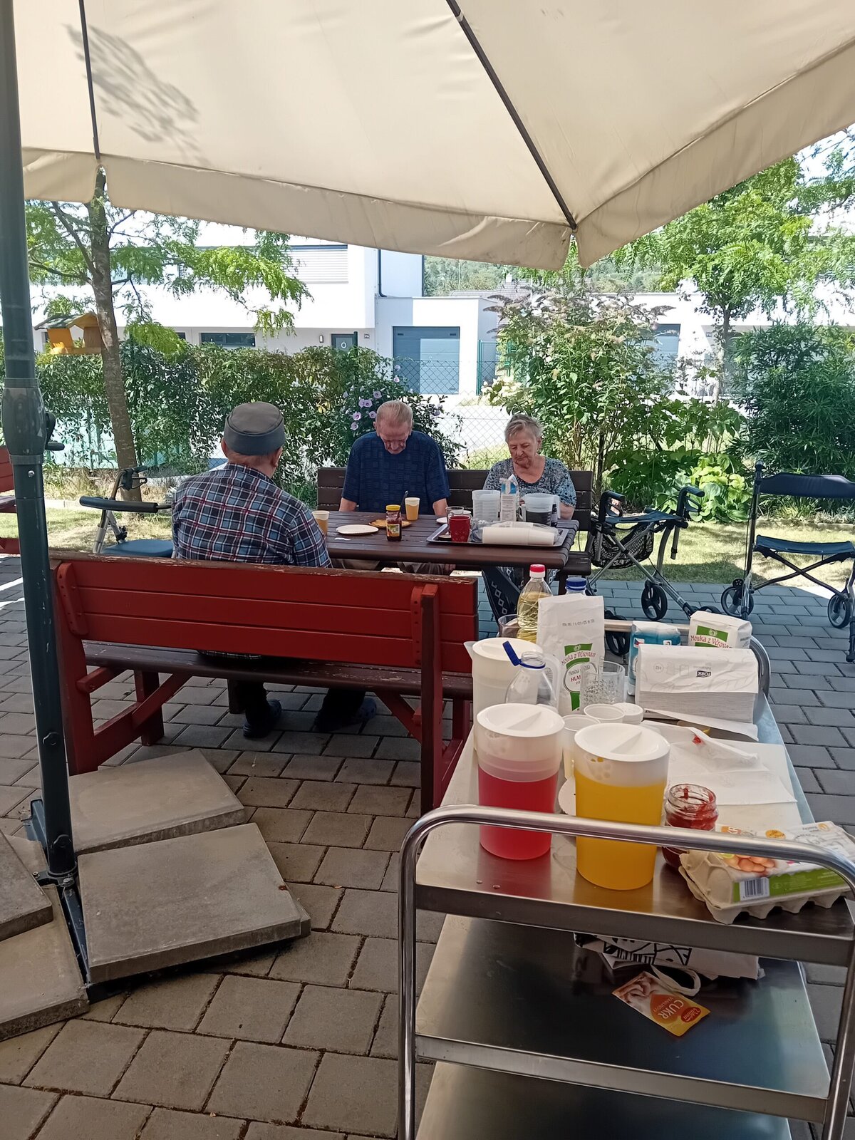 Společně s klienty jsme připravovali palačinky. Nachystali jsme si potřebné ingredience a jelikož nám počasí přálo, vyrazili jsme ven na zahradu. Klienti si mohli palačinku sami udělat a natřít různými druhy marmelád. Borůvková, jahodová, meruňková, všechny nám moc chutnaly.