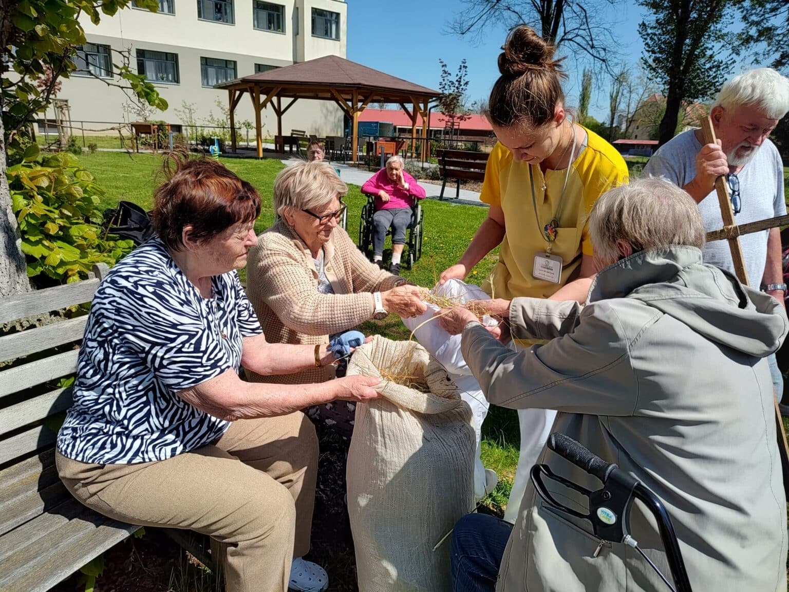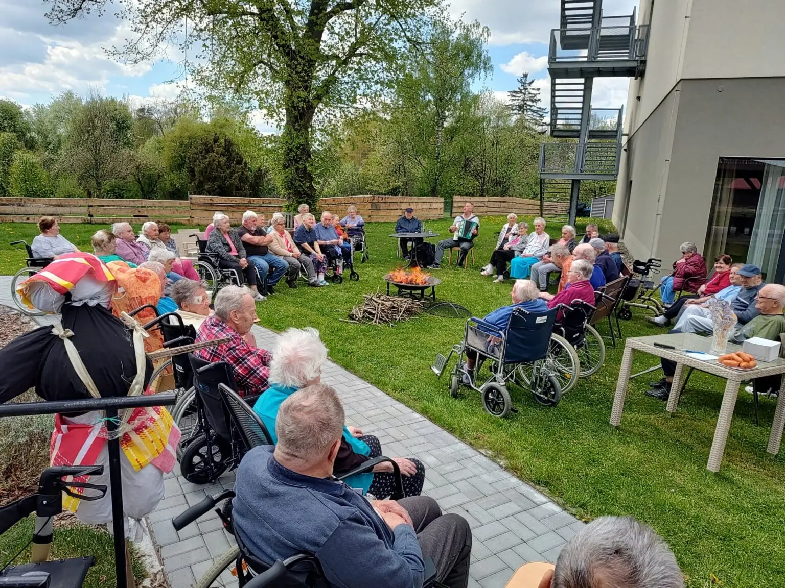 Na upravené zahradě čekalo dobře připravené ohniště i figurína, kterou si klienti sami vytvořili. Nakonec však do plamenů putovaly papírové loutky vyrobené společně s dětmi z MŠ Telč.