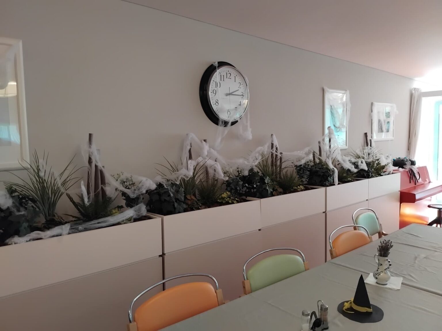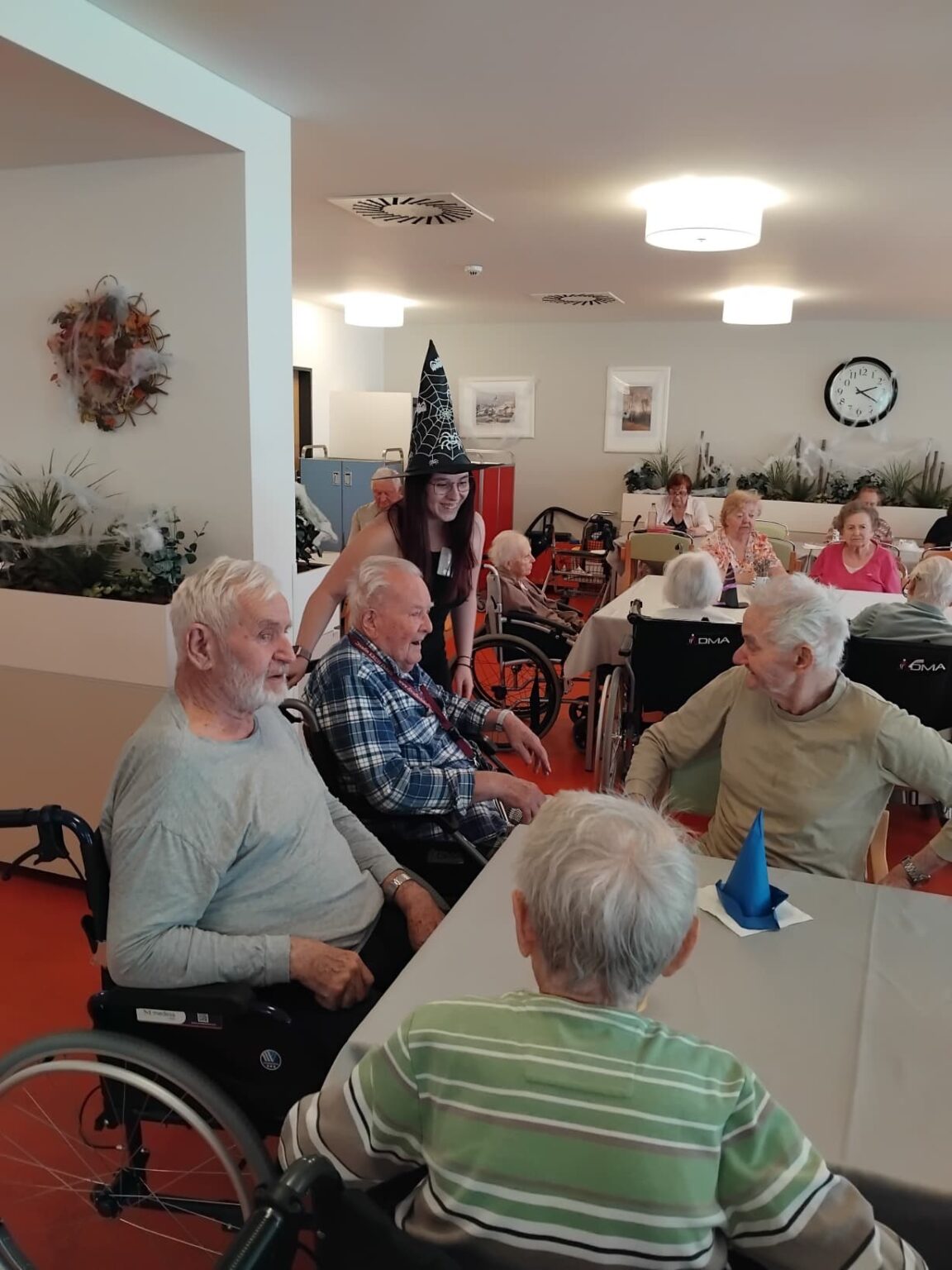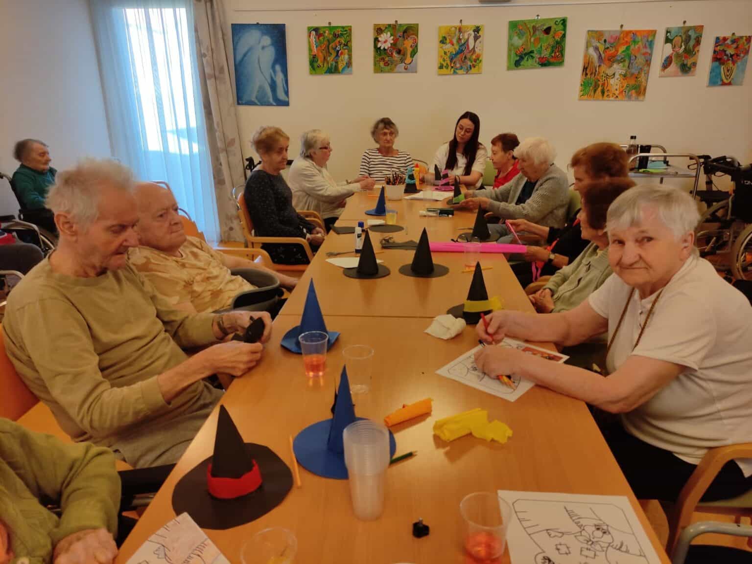 Čarodějnickou atmosféru dokreslovala výzdoba, o kterou se postaral tým aktivizačních pracovnic ve spolupráci s našimi klienty.