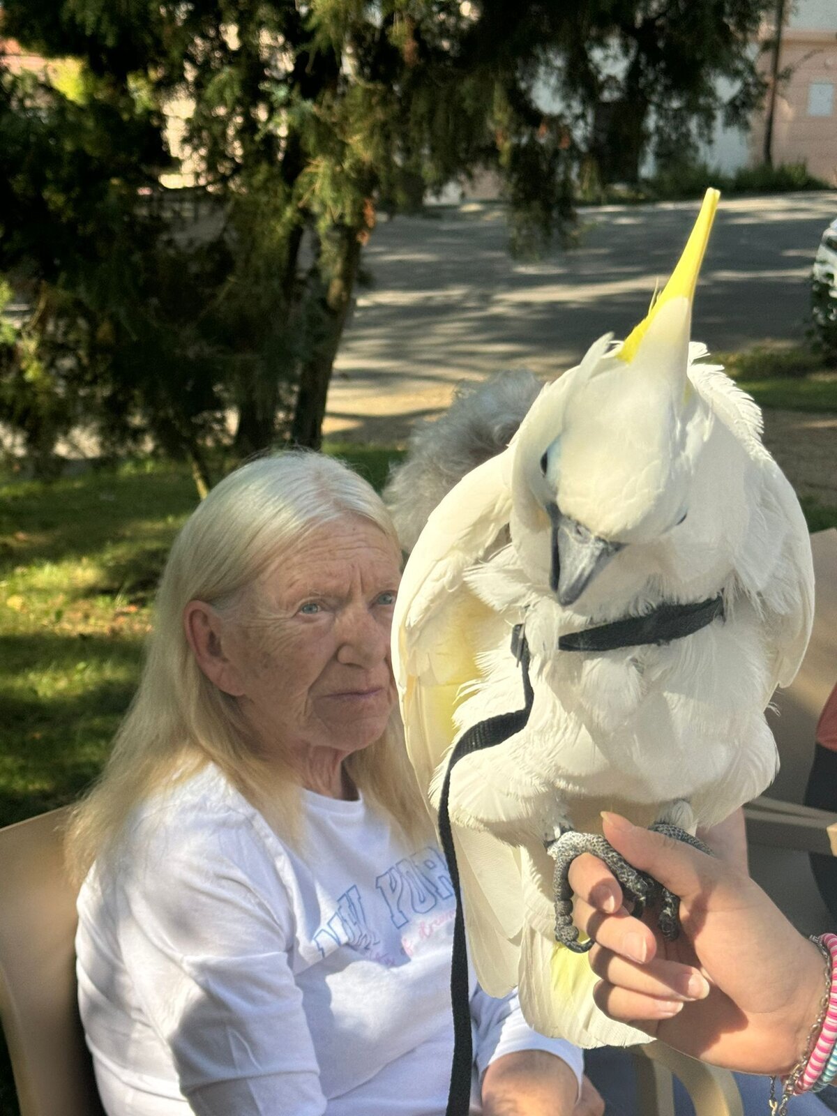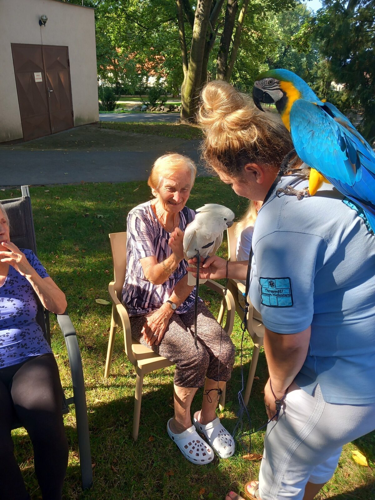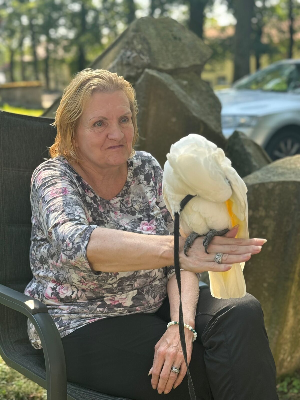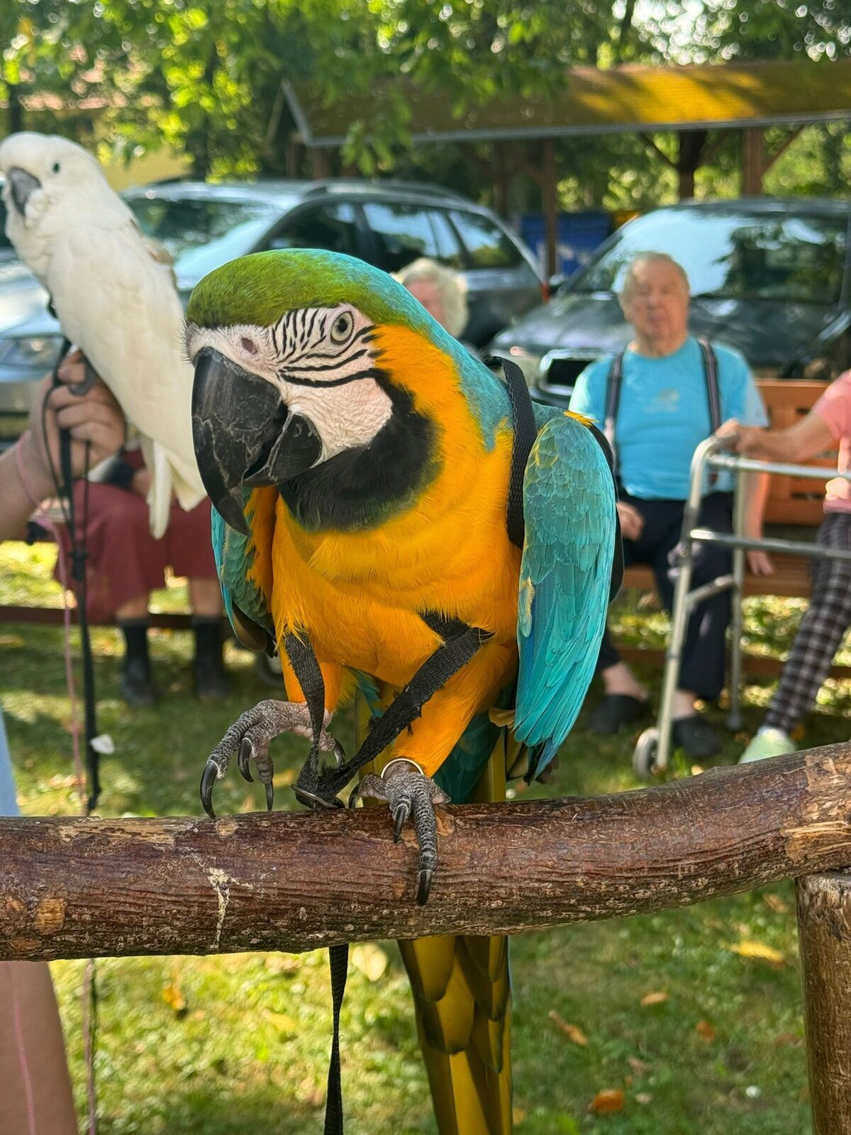 Papoušci Ara a Kakadu přiletěli do Pyšel. Dozvěděli jsme se spoustu zajímavých informací, pohladili po peří a jednoho záletníka sundávali ze stromu.