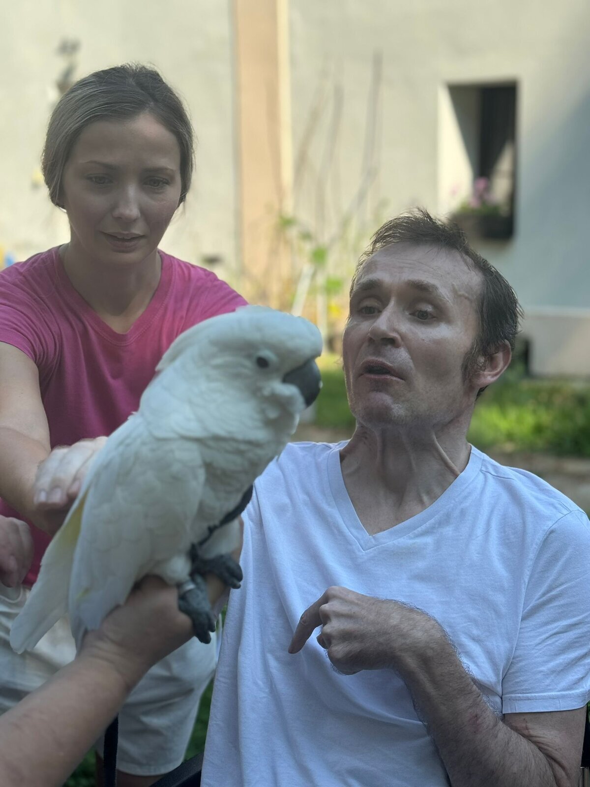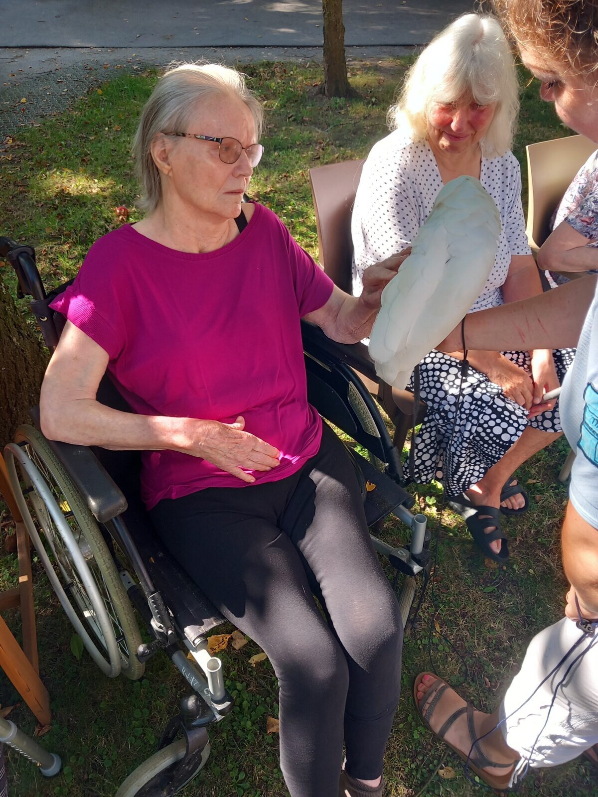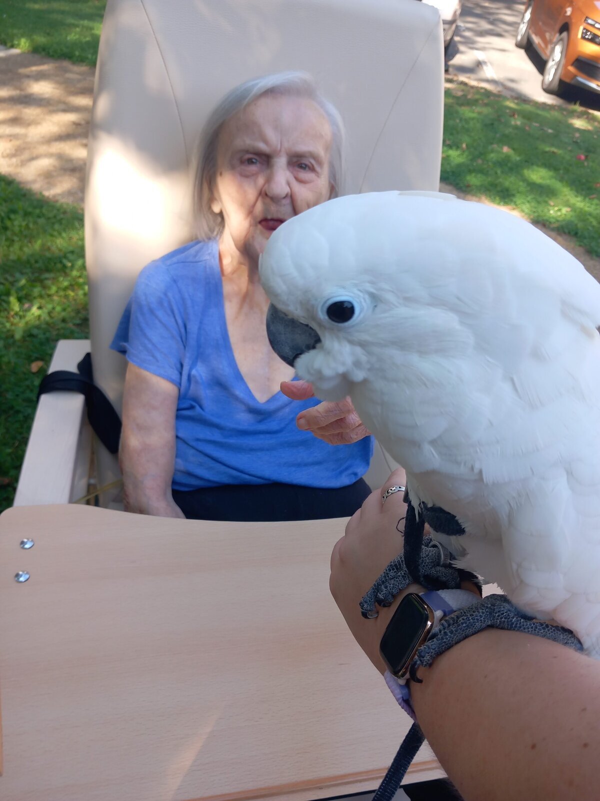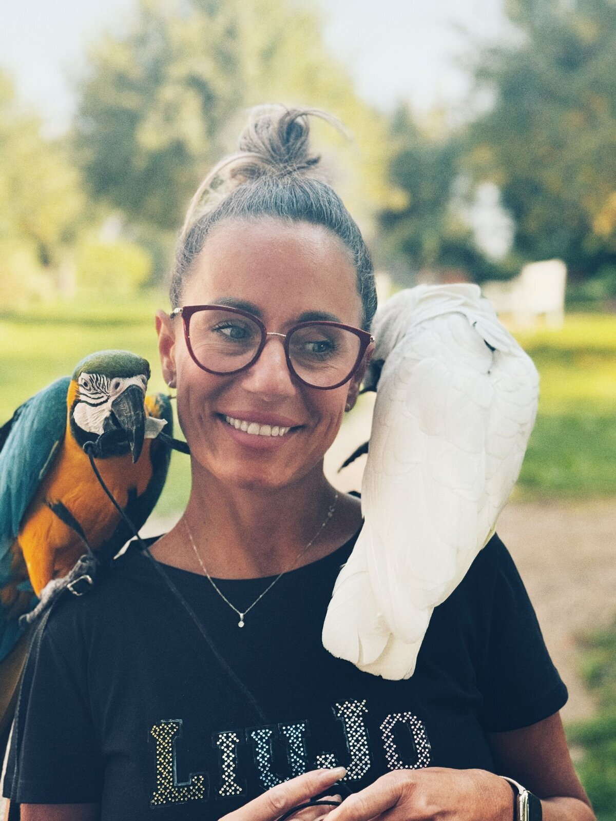Papoušci Ara a Kakadu přiletěli do Pyšel. Dozvěděli jsme se spoustu zajímavých informací, pohladili po peří a jednoho záletníka sundávali ze stromu.