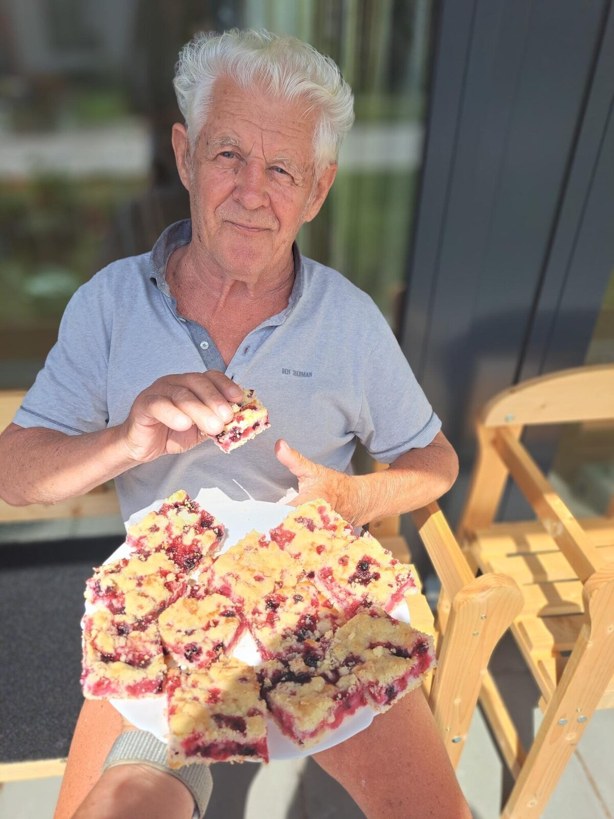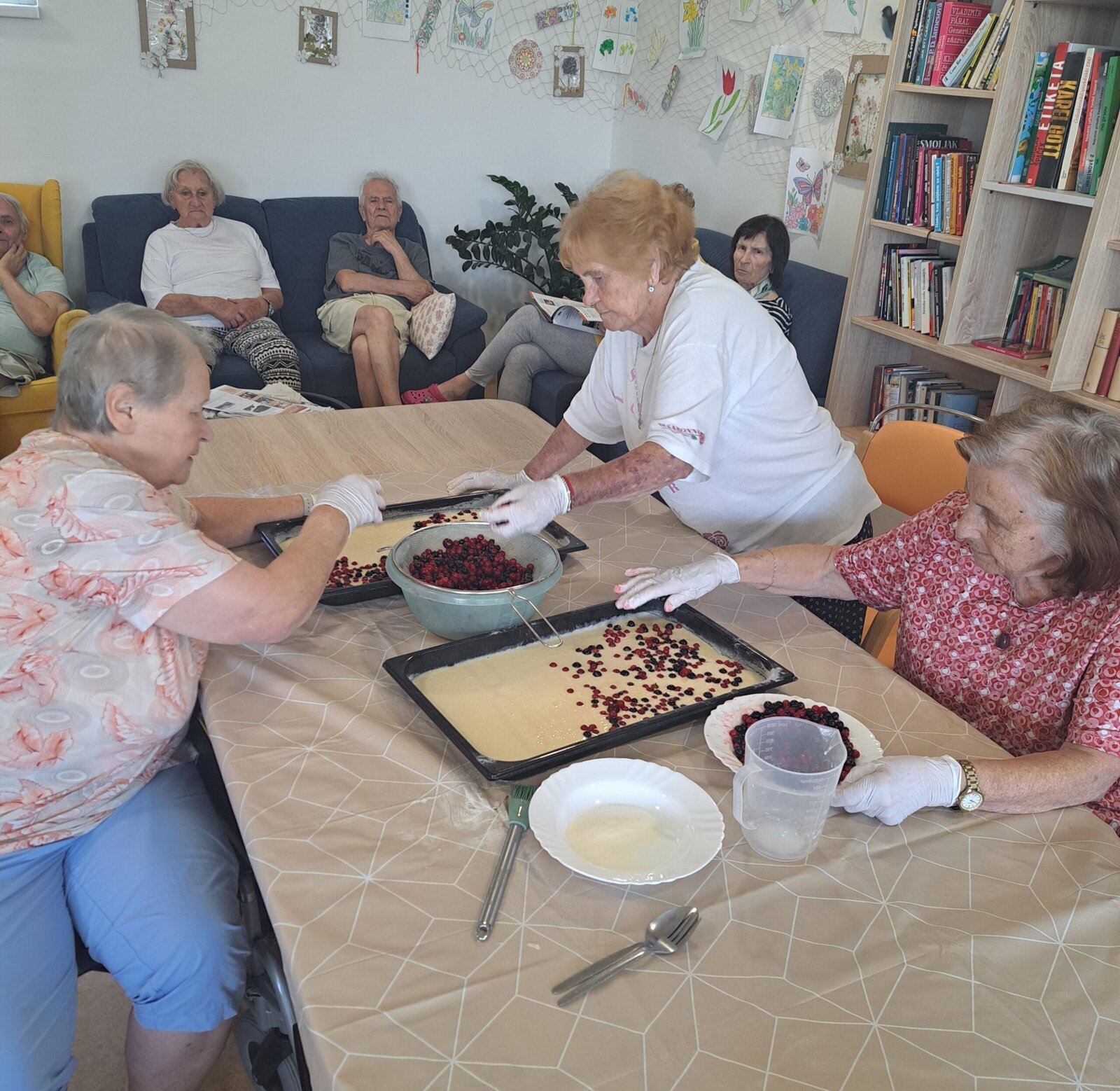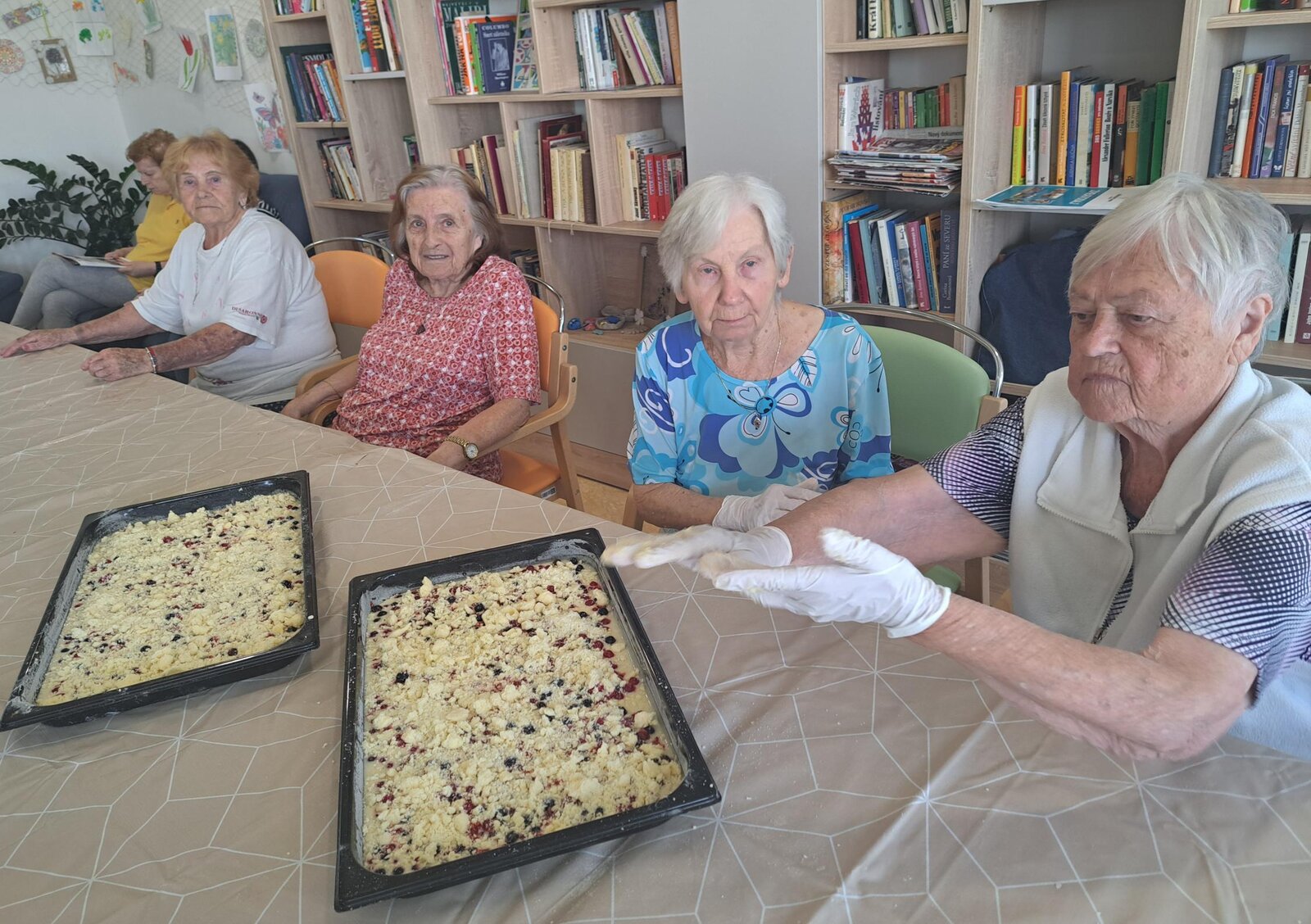 Klienti Senevida v Boskovicích se společně s aktivizačními pracovnicemi pustili v rámci dopolední aktivizace do pečení ovocného koláče👍. Nejprve smíchali suroviny, které pak dali na plech, posypali červeným rybízem a na konec drobenkou. Koláč se povedl, a klienti si na něm moc pochutnali😋.