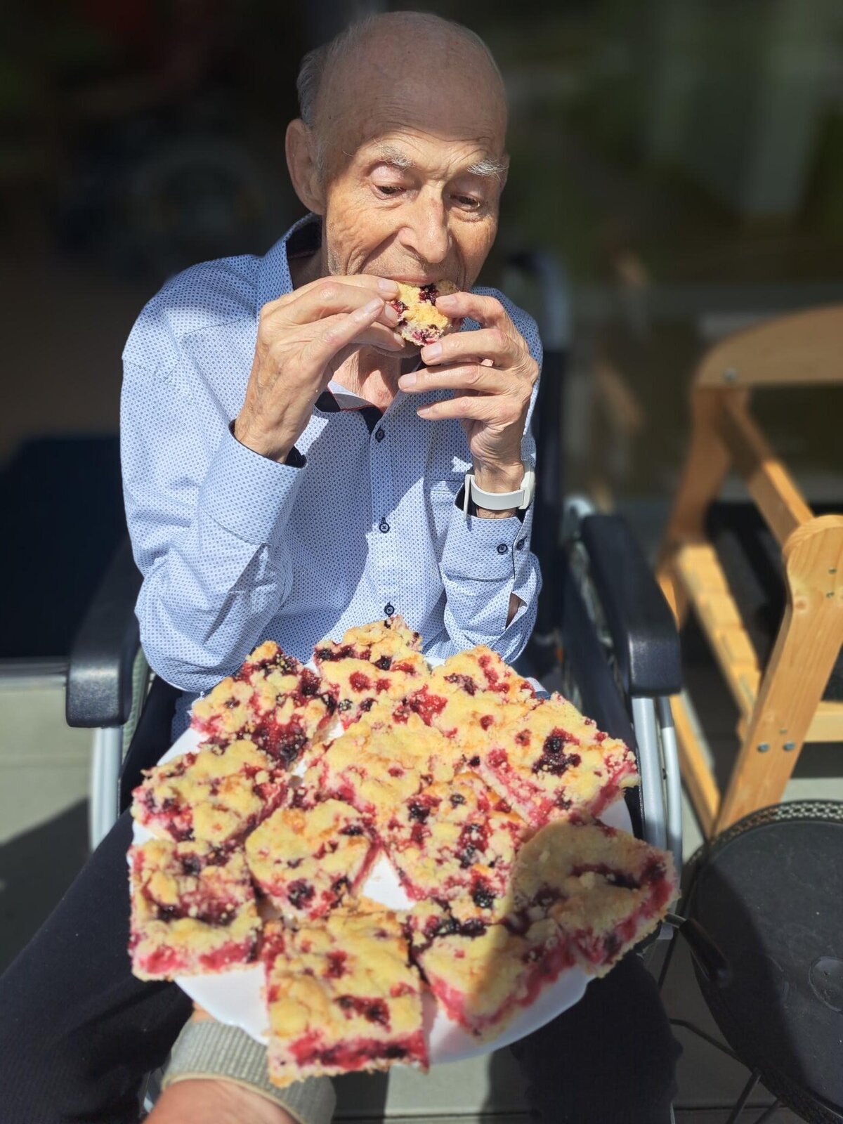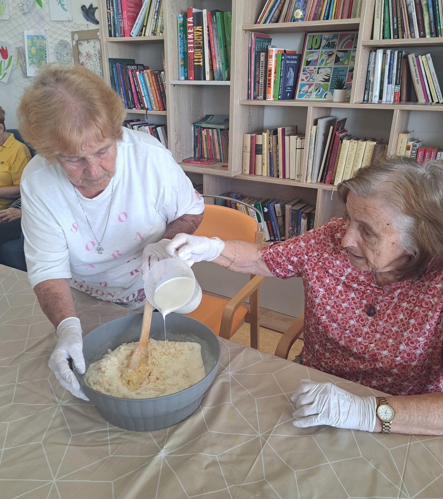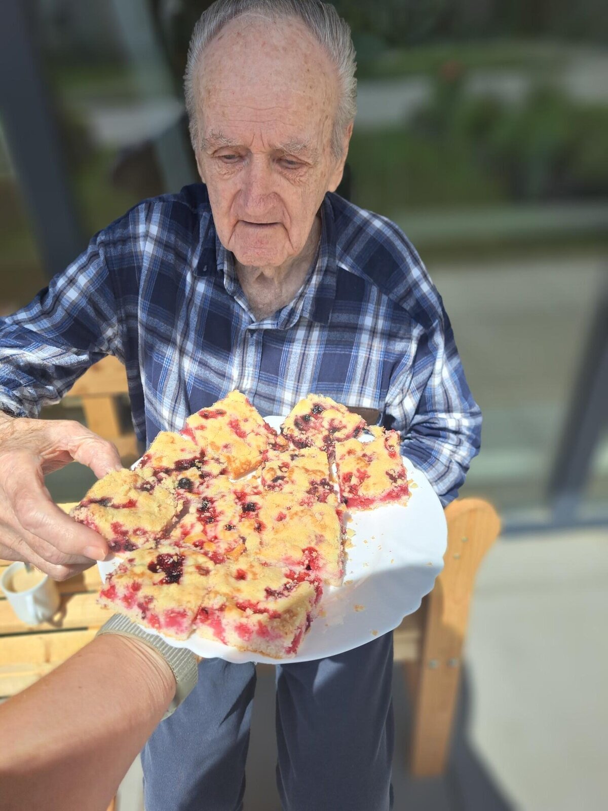 Klienti Senevida v Boskovicích se společně s aktivizačními pracovnicemi pustili v rámci dopolední aktivizace do pečení ovocného koláče👍. Nejprve smíchali suroviny, které pak dali na plech, posypali červeným rybízem a na konec drobenkou. Koláč se povedl, a klienti si na něm moc pochutnali😋.