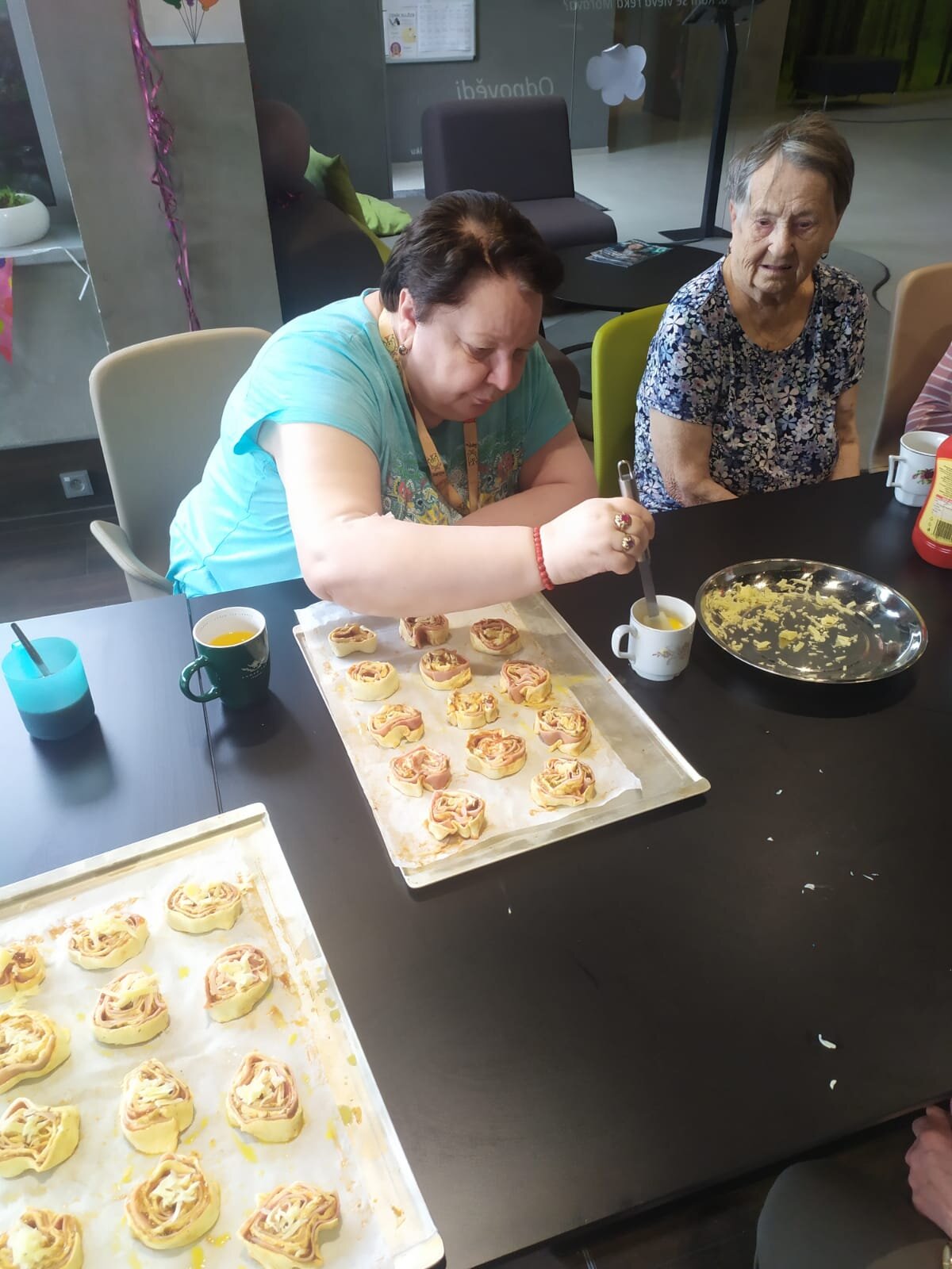 Na odpoledne jsme si s klientkami vytvořily chuťovky, a to v podobě šnečků z listového těsta, šunky, sýra a různého koření. Každá z dam se zapojila a výsledek je skvělý a měkoučký. 🤩"