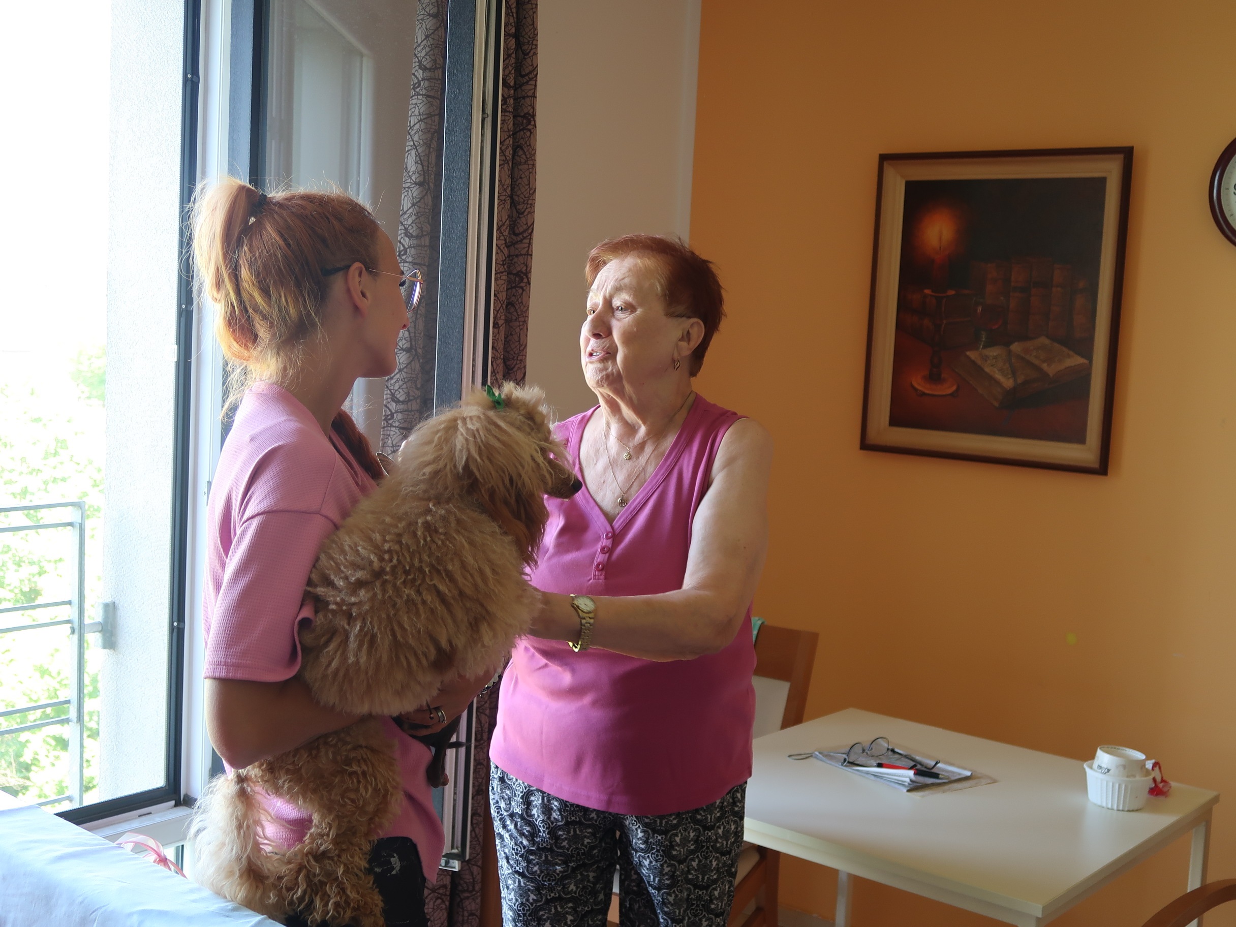 Návštěvy paní Anny Knop-Kostkové s jejími psími spolupracovníky dokazují, že psi přinášejí do života člověka něco výjimečného. Canisterapie je u našich klientů vždy doprovázena rozzářenými obličeji, úsměvy a pozitivními změnami nálady.