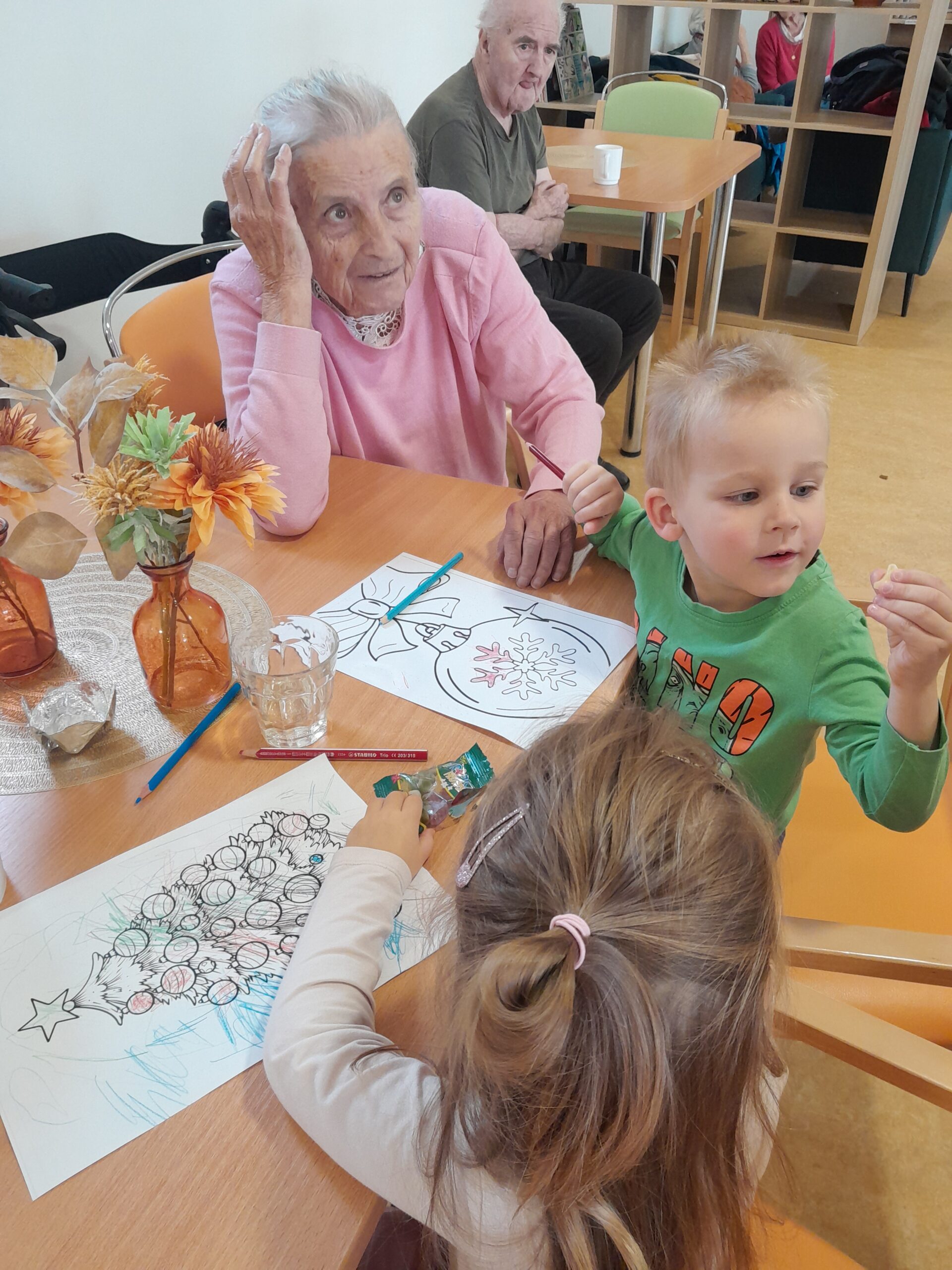 Do Senevida Boskovice zavítaly děti z Mateřské školy ve Valchově, aby klientům s radostí předvedly své pěvecké vystoupení. Jejich nadšení, energie a bezprostřednost okamžitě vykouzlily úsměvy na tvářích všech přítomných. Po vystoupení si děti společně s klienty malovaly obrázky s vánoční tématikou. Klienti byli z těchto malých capartů nadšeni, jejich zpěv i spontánní kontakt jim přinesl mnoho radosti a dojetí. Děkujeme učitelům i dětem za krásnou návštěvu a radost, kterou našim klientům předali. 🥰
