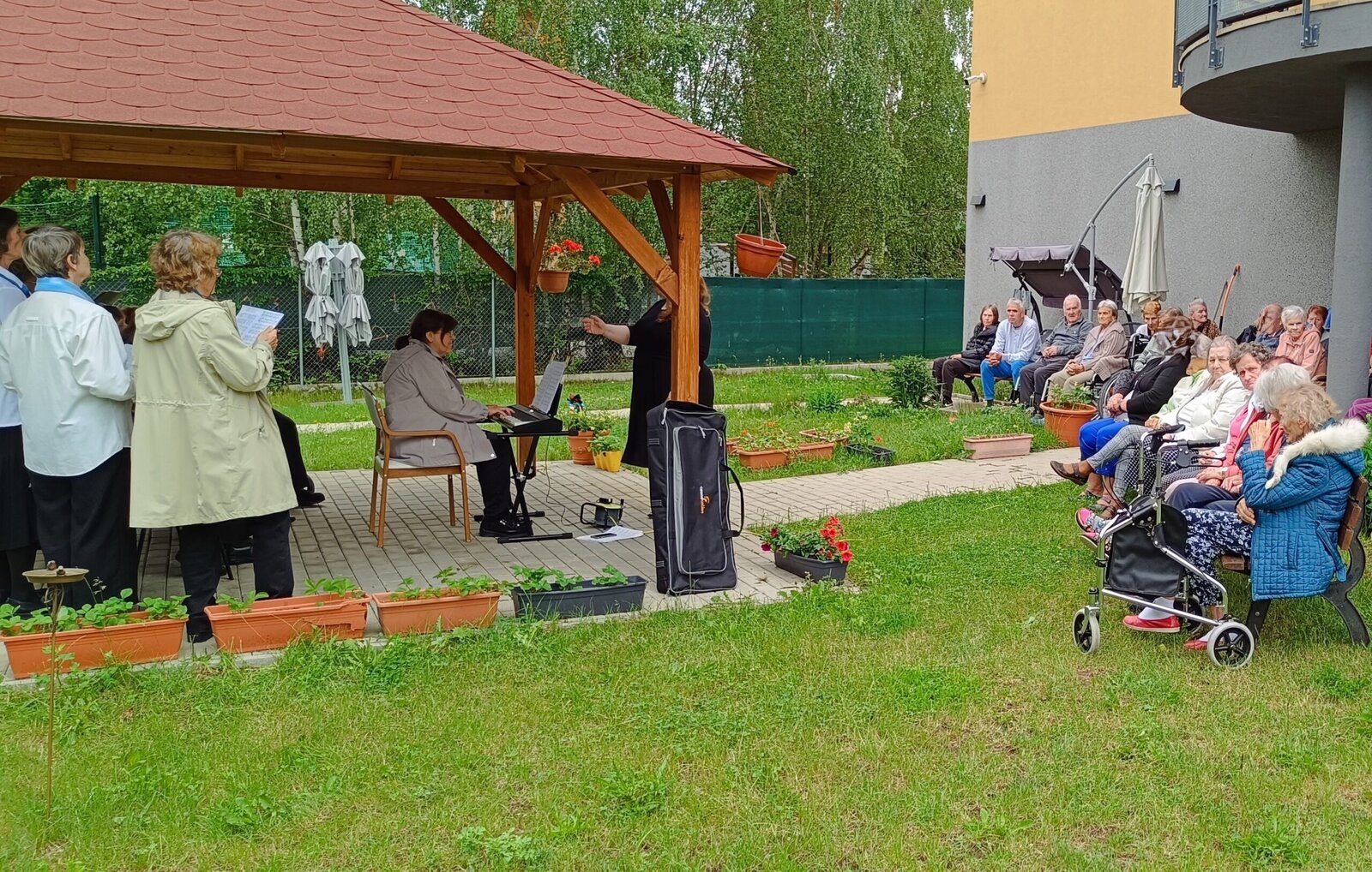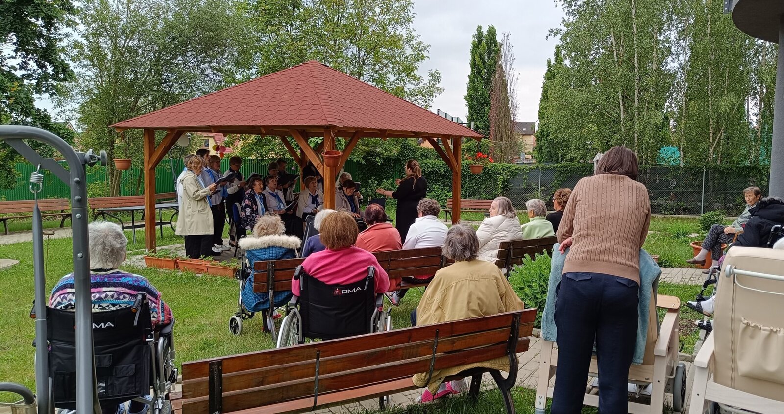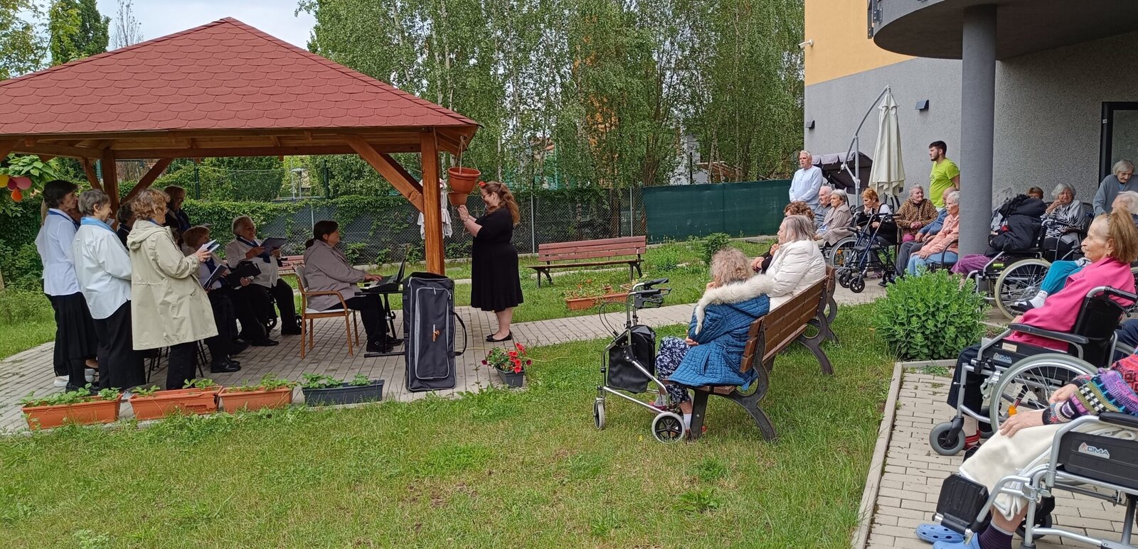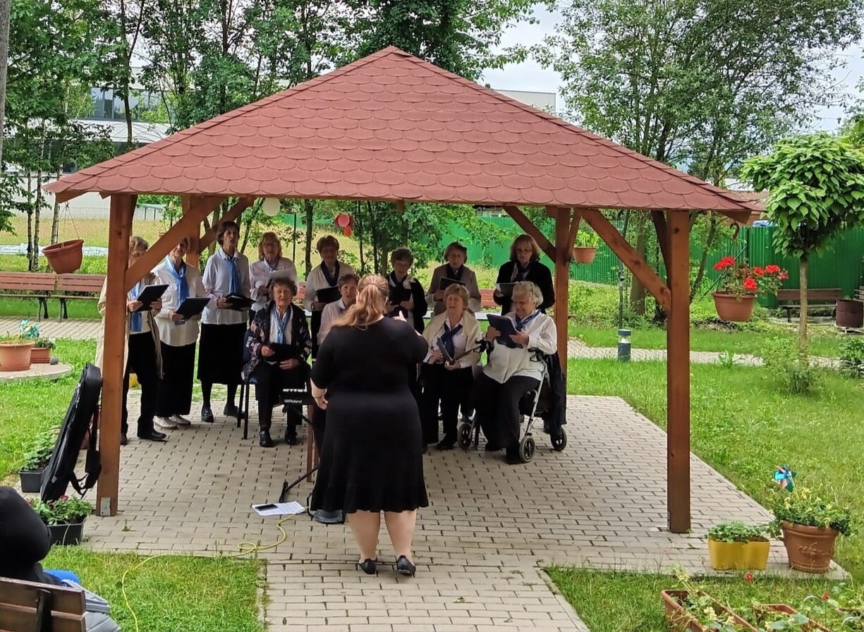 Tento týden u nás v Senevida Modřany poctili svou návštěvou seniorky z pěveckého sboru Života 90. Sbor pod vedením Květy Žákové je založený od roku 1989 a skládá se z 21 členů. Koncert se konal na naší útulné zahrádce a zpívali se zde známe české, lidové písně ale také písně od Suchý a Šlitr např.