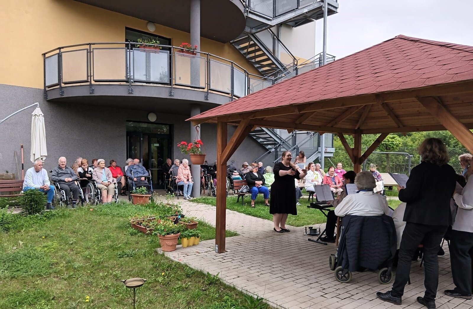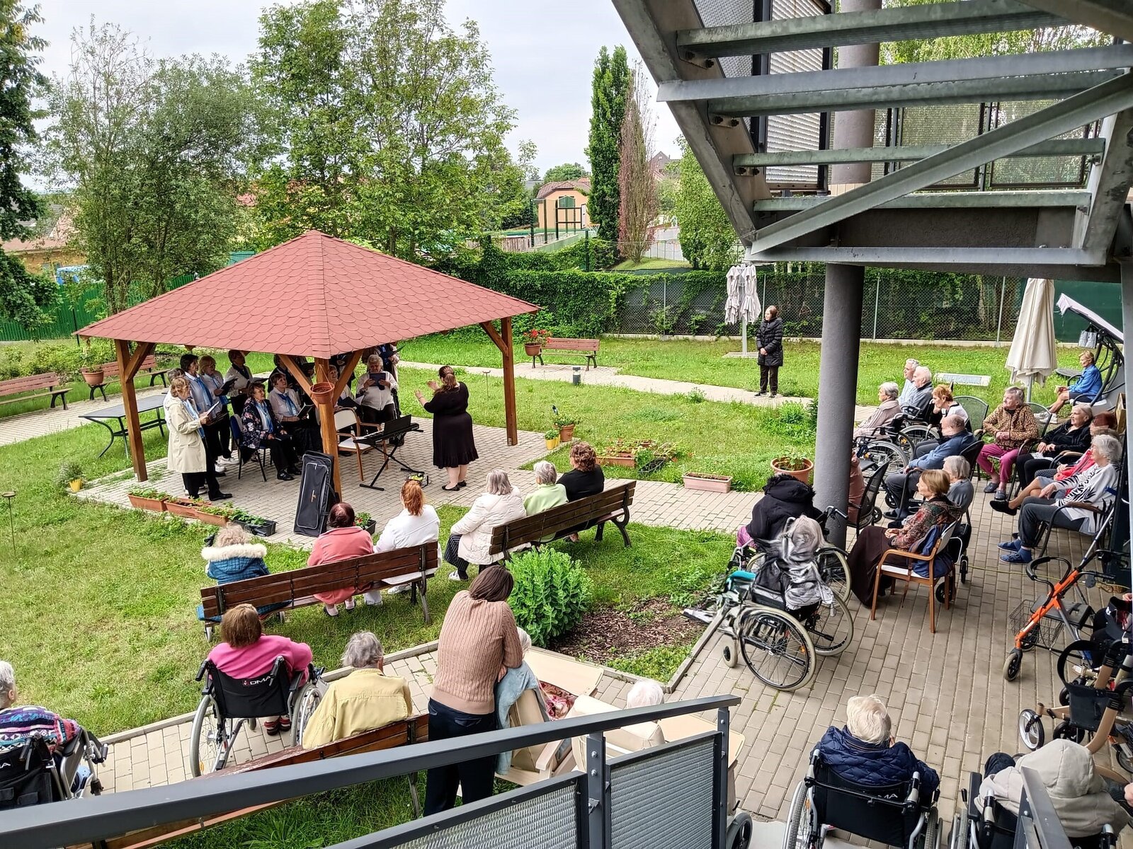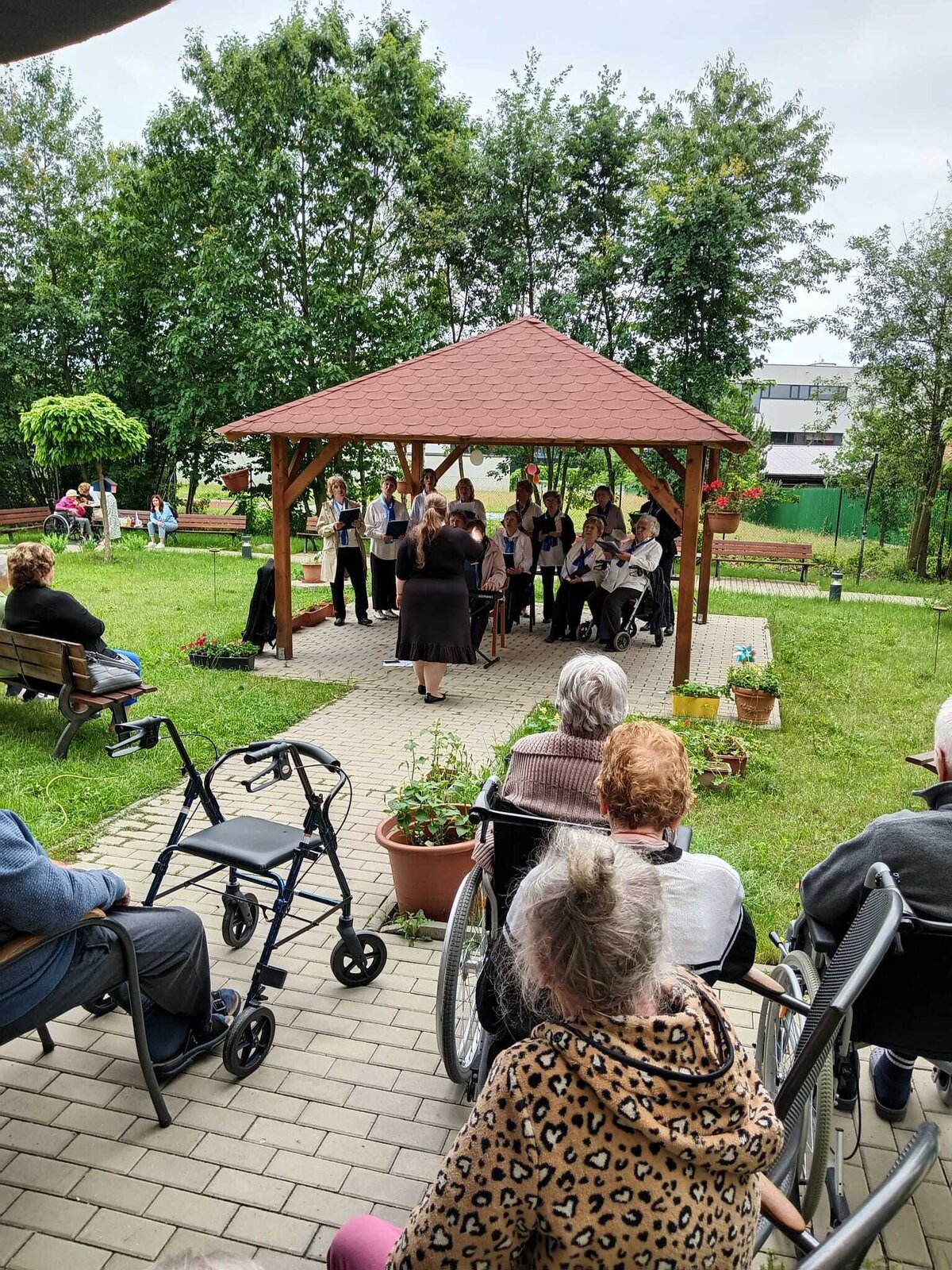 Tento týden u nás v Senevida Modřany poctili svou návštěvou seniorky z pěveckého sboru Života 90. Sbor pod vedením Květy Žákové je založený od roku 1989 a skládá se z 21 členů. Koncert se konal na naší útulné zahrádce a zpívali se zde známe české, lidové písně ale také písně od Suchý a Šlitr např.