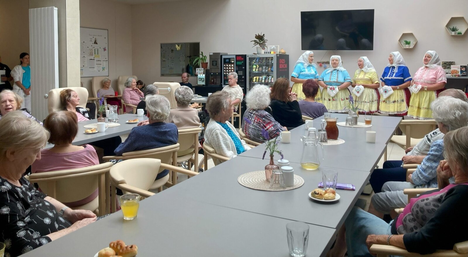 Dne 11.9. nás v Senevida Lázně Bohdaneč navštívil soubor Mariánky. Dámy nám krásně zazpívaly písně ze svého kraje - Kyjov a pověděly nám o svých zvycích a hlavně nám předvedly kyjovský kroj.
