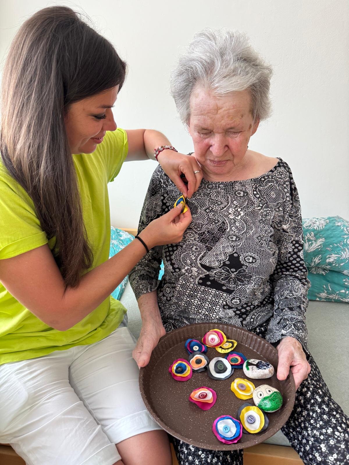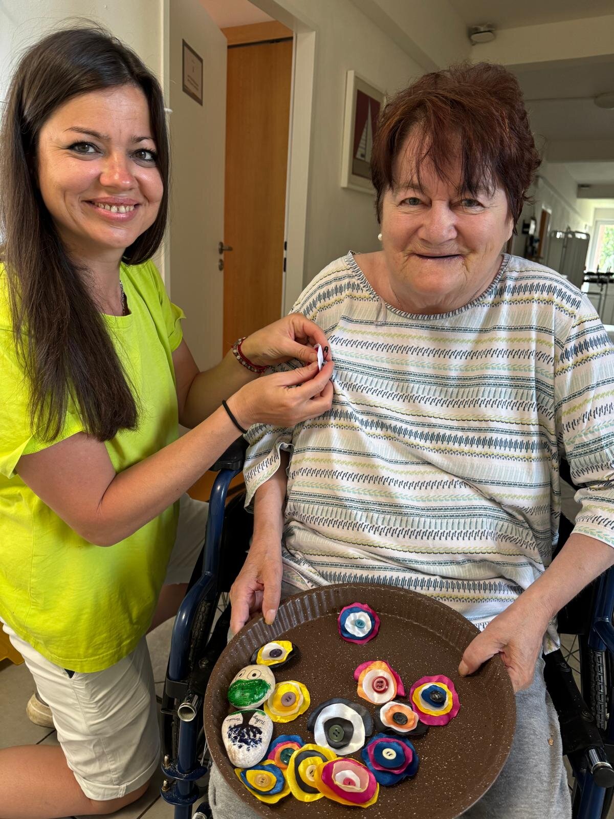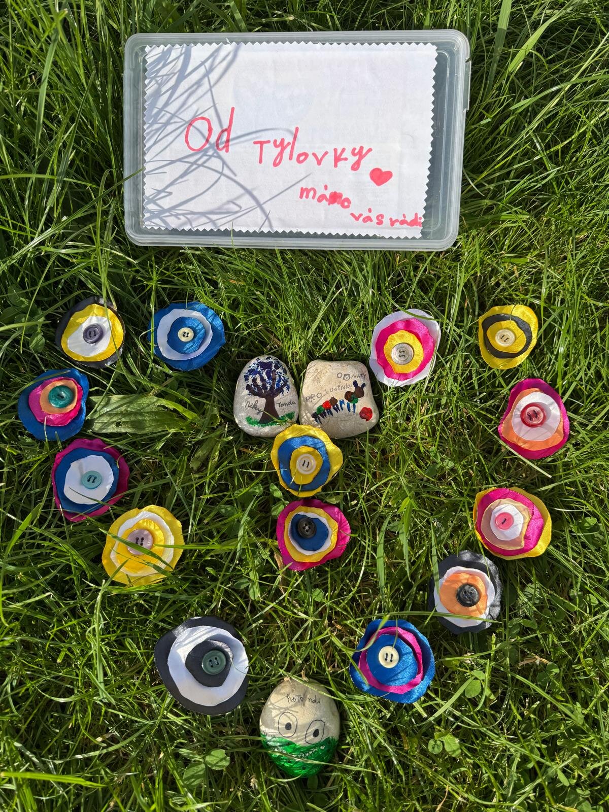 V rámci projektu s organizací Mezi námi, ops nám pro klienty Senevida Prácheň vyrobily děti ze školní družiny ZŠ Tylova Písek krásné barevné připínací knoflíky, jako poděkování za celoroční setkávání 😊😍. A my jsme jim na oplátku poslali dopis a malé dárečky v podobě sladkostí 🌞💜
