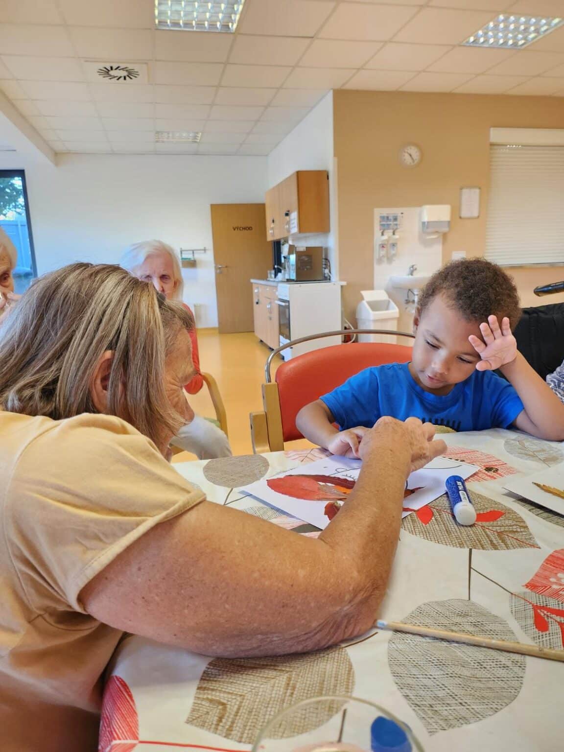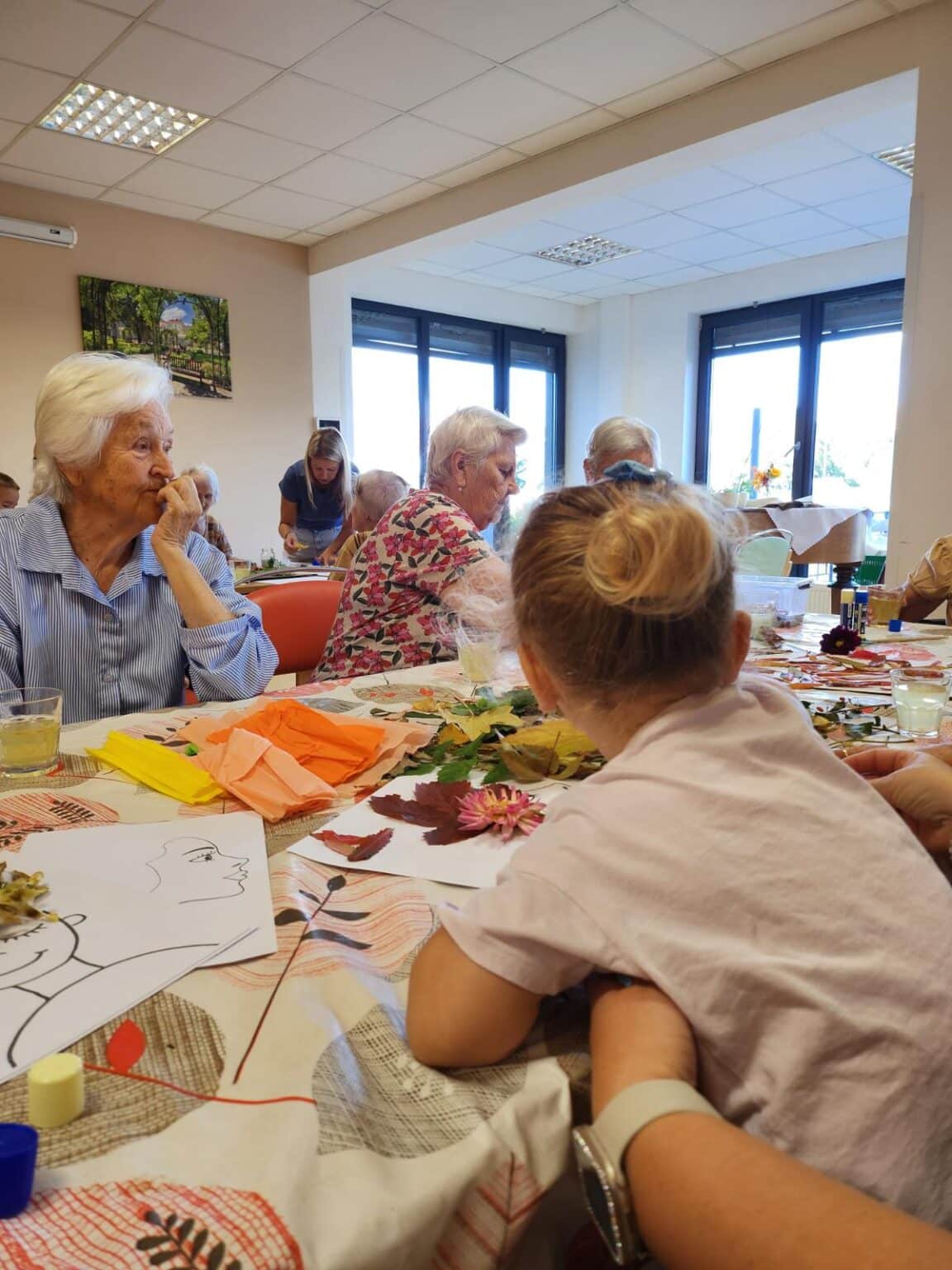 Sychravé počasí, stromy hrající všemi barvami a popíjení horkého čaje. Slunečné letní dny jsou za námi a je tu opět podzim, a tak jsme se s našimi klienty pustili do výroby podzimních dekorací do našeho SeniorCentra Plzeň. V rámci mezigeneračního setkávání, které u nás v domově probíhá, jsme požádali o pomoc i dětskou skupinku Hangárek.