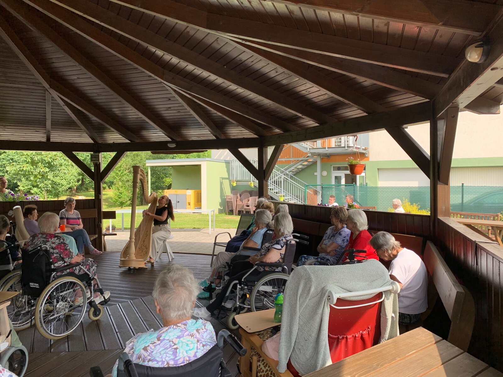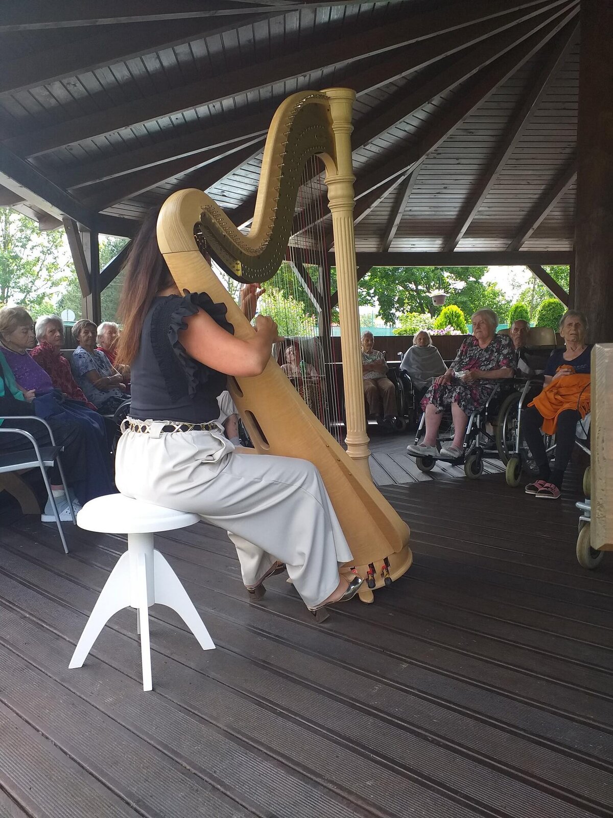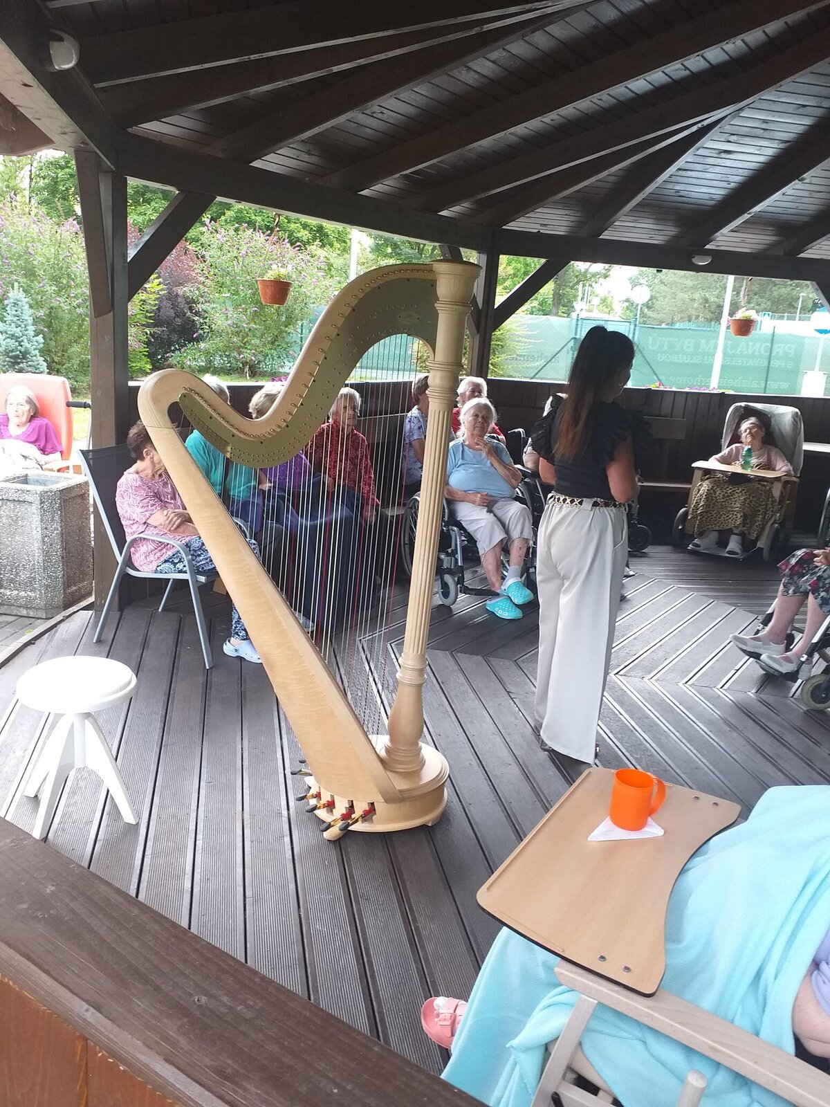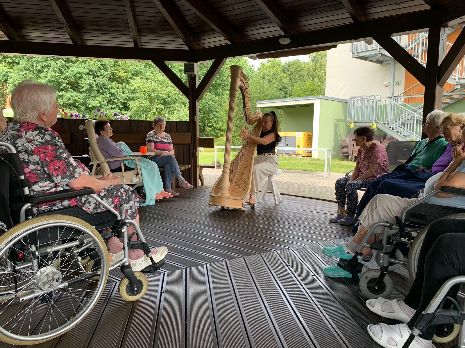 Svou návštěvou v Senevida České Budějovice nás poctila harfistka Katarina Ševčíková. Klidné tóny harfy nás uvedly do klidné, relaxační nálady. A k tomu ještě příjemné letní počasí.