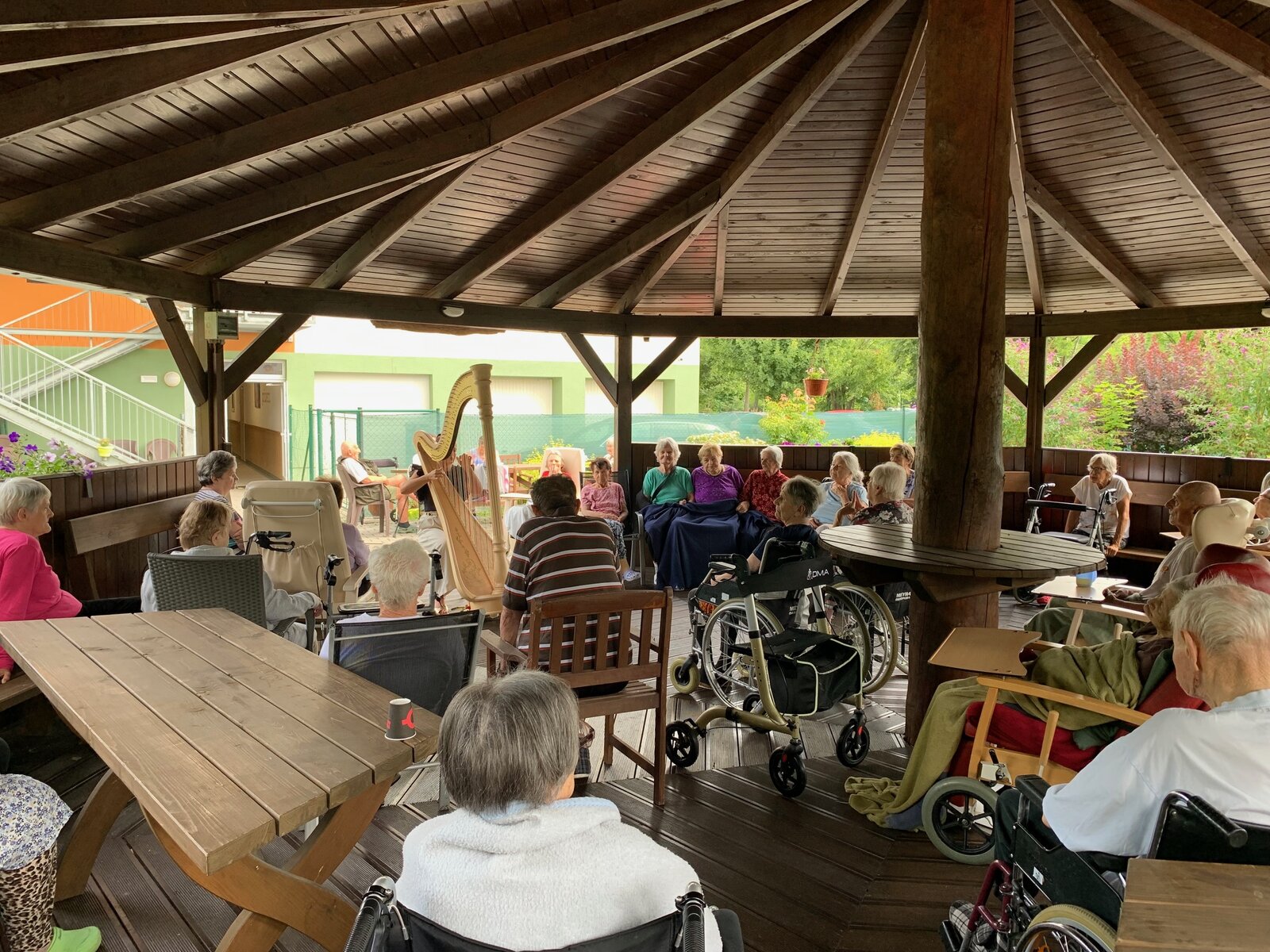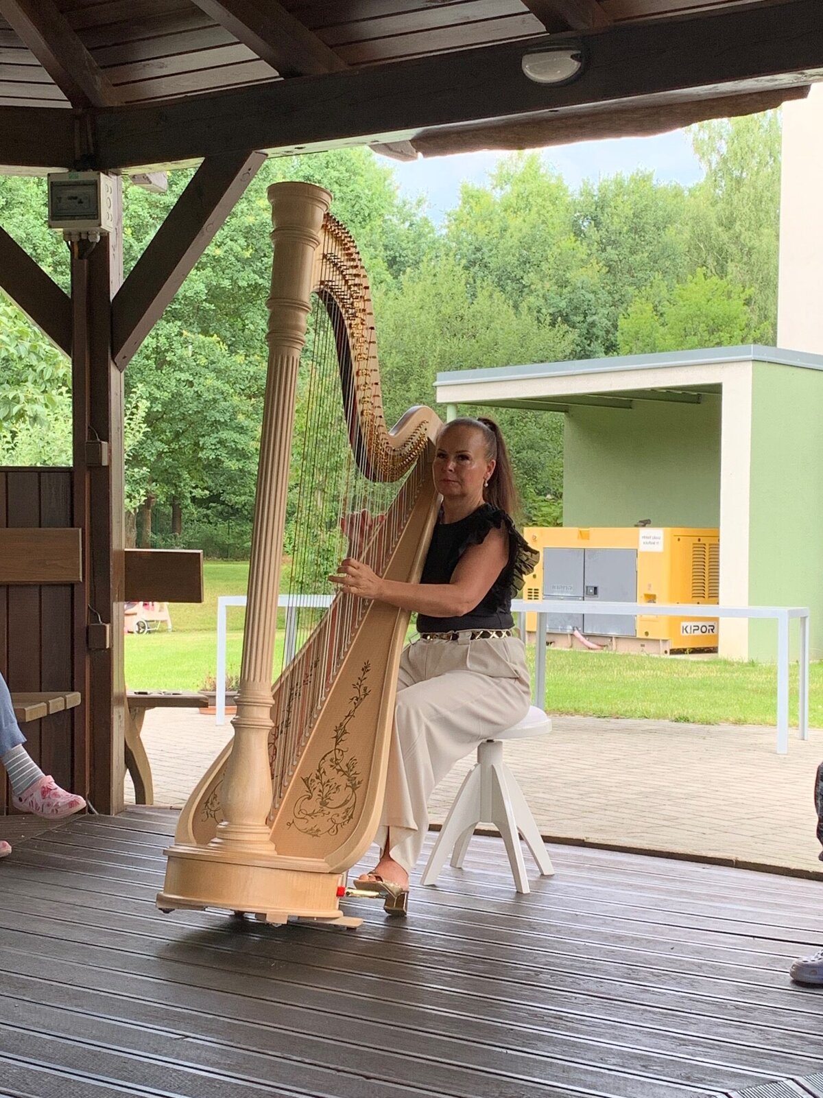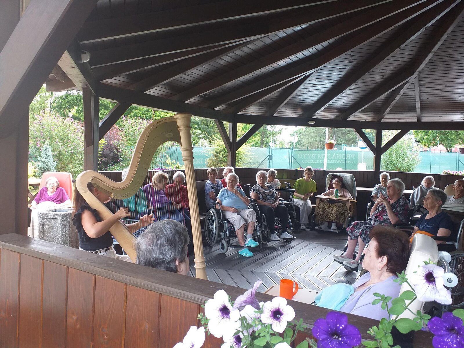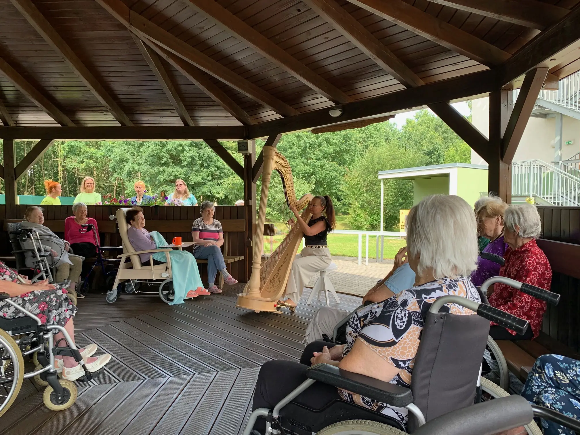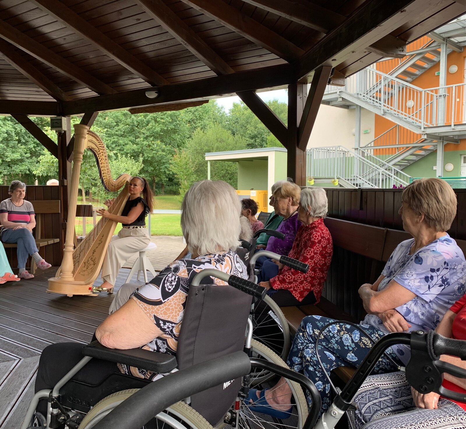 Svou návštěvou v Senevida České Budějovice nás poctila harfistka Katarina Ševčíková. Klidné tóny harfy nás uvedly do klidné, relaxační nálady. A k tomu ještě příjemné letní počasí.