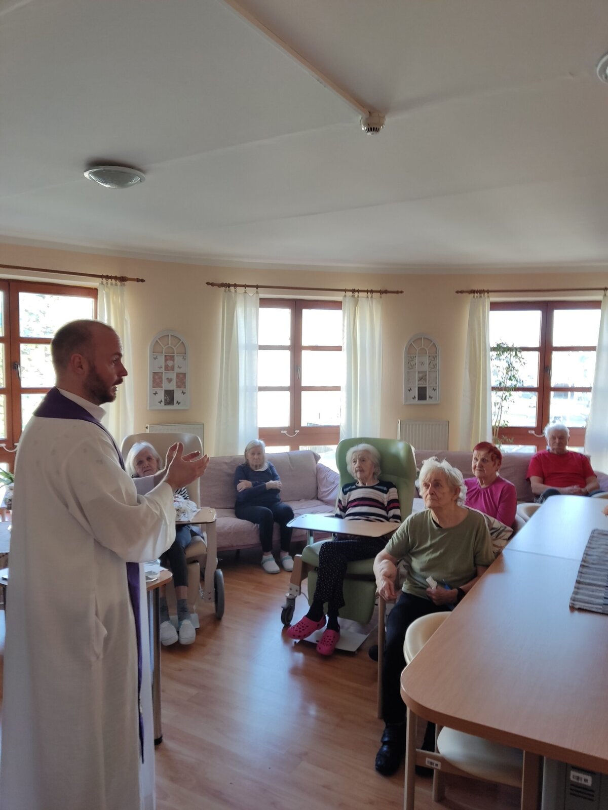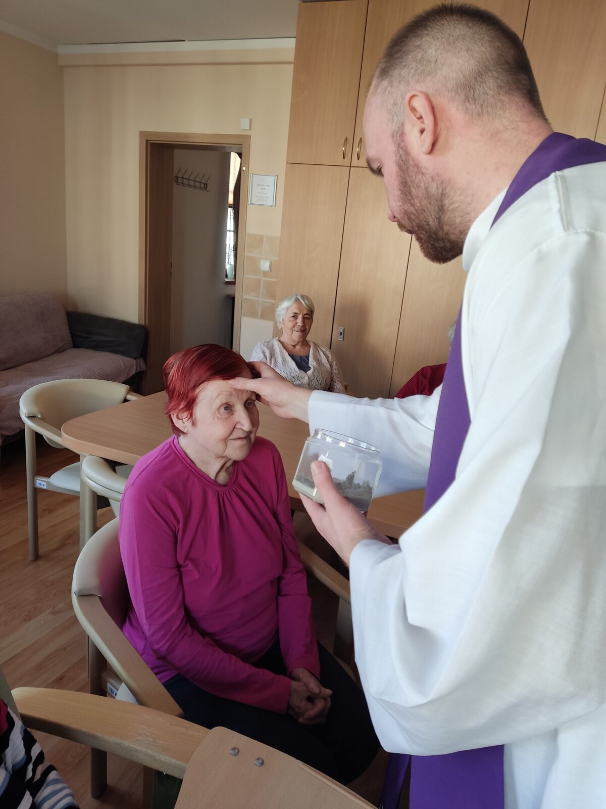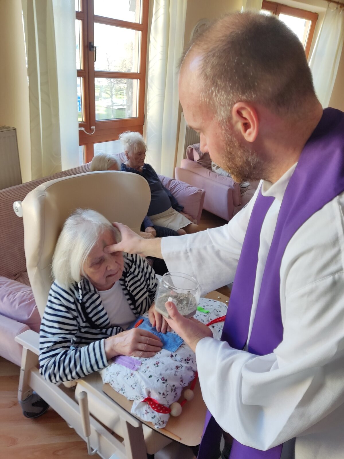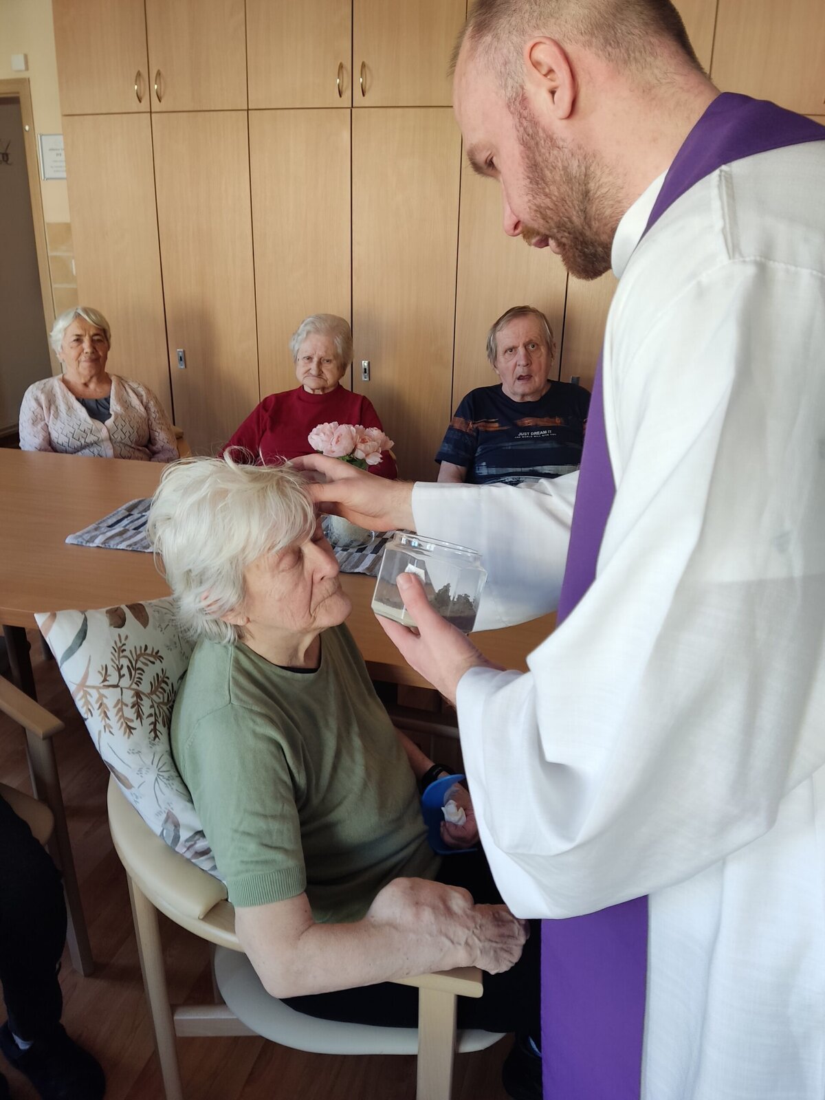 Na popeleční středu se v Senevida Frýdek - Místek konala pravidelná Mše svatá, kterou sloužil kaplan Václav. Součástí Mše bylo pomazání popelcem. Po jejím skončení navštívil i klienty na pokoji. Děkujeme.❣️🙏