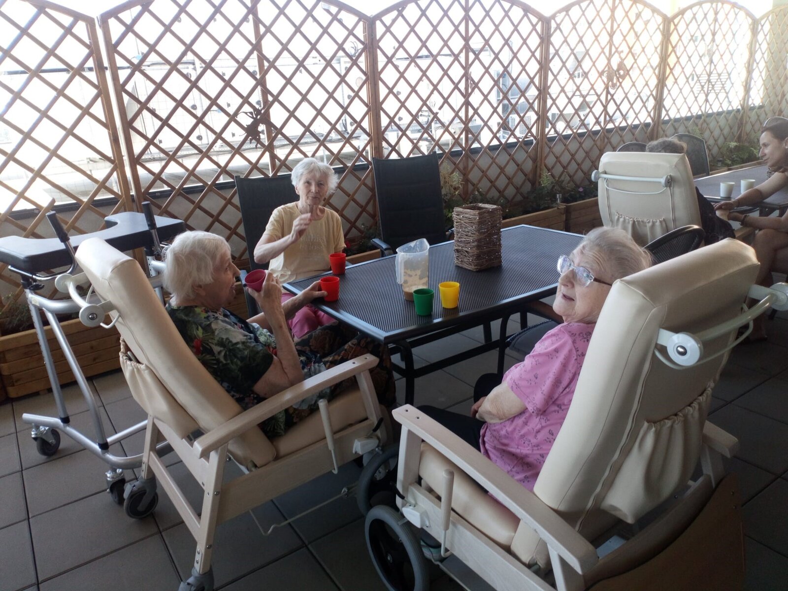 Za krásného teplého počasí jsou klienti domova Senevida Jasmín velmi rádi za naši krásnou terasu. 👍 Příjemné posezení s kávičkou ☕ a kdo chce, ten se s námi může postarat o naše květiny 🌺, které nám tu terasu dělají svými barvami mnohem veselejší. 💐💙