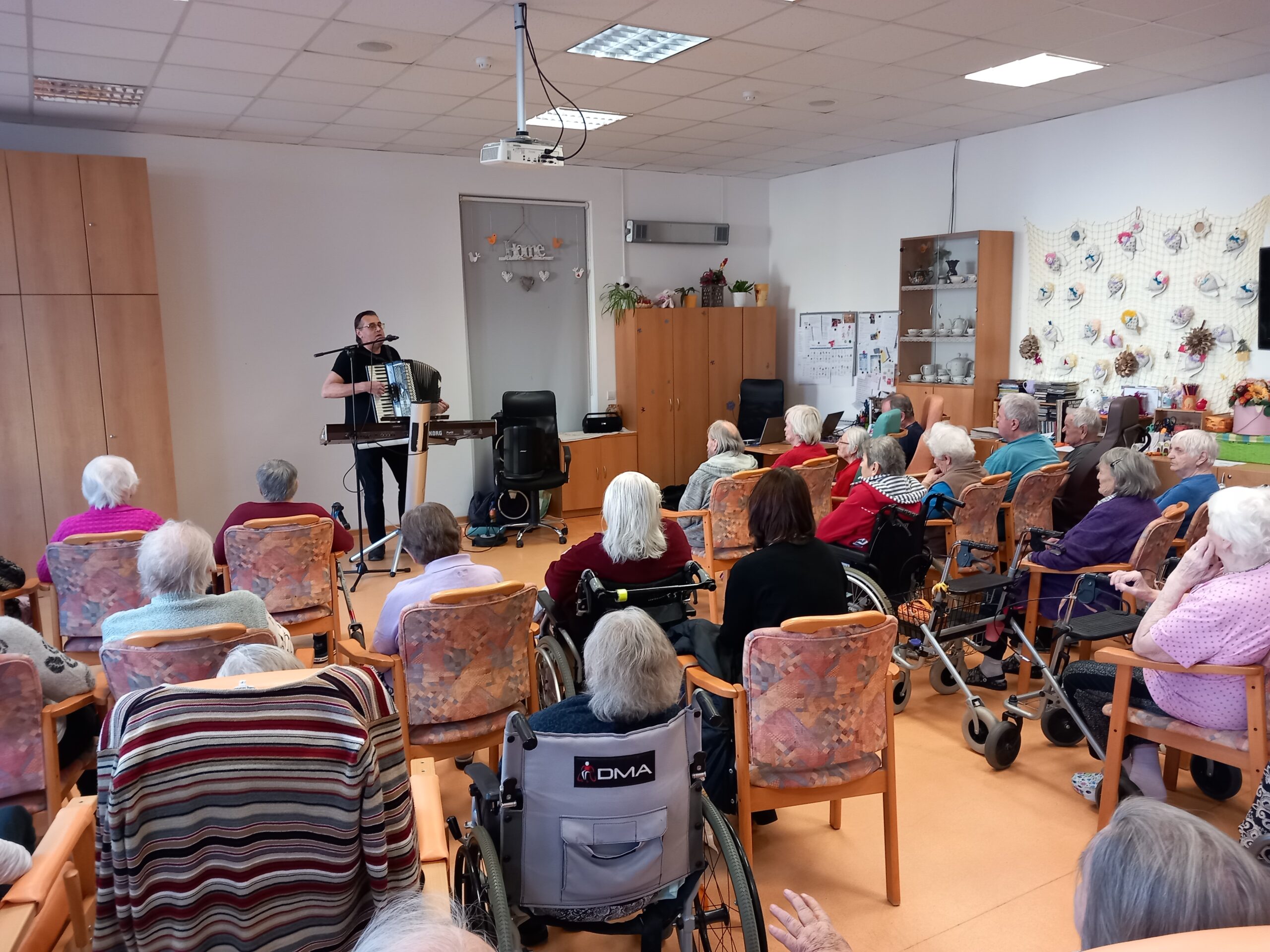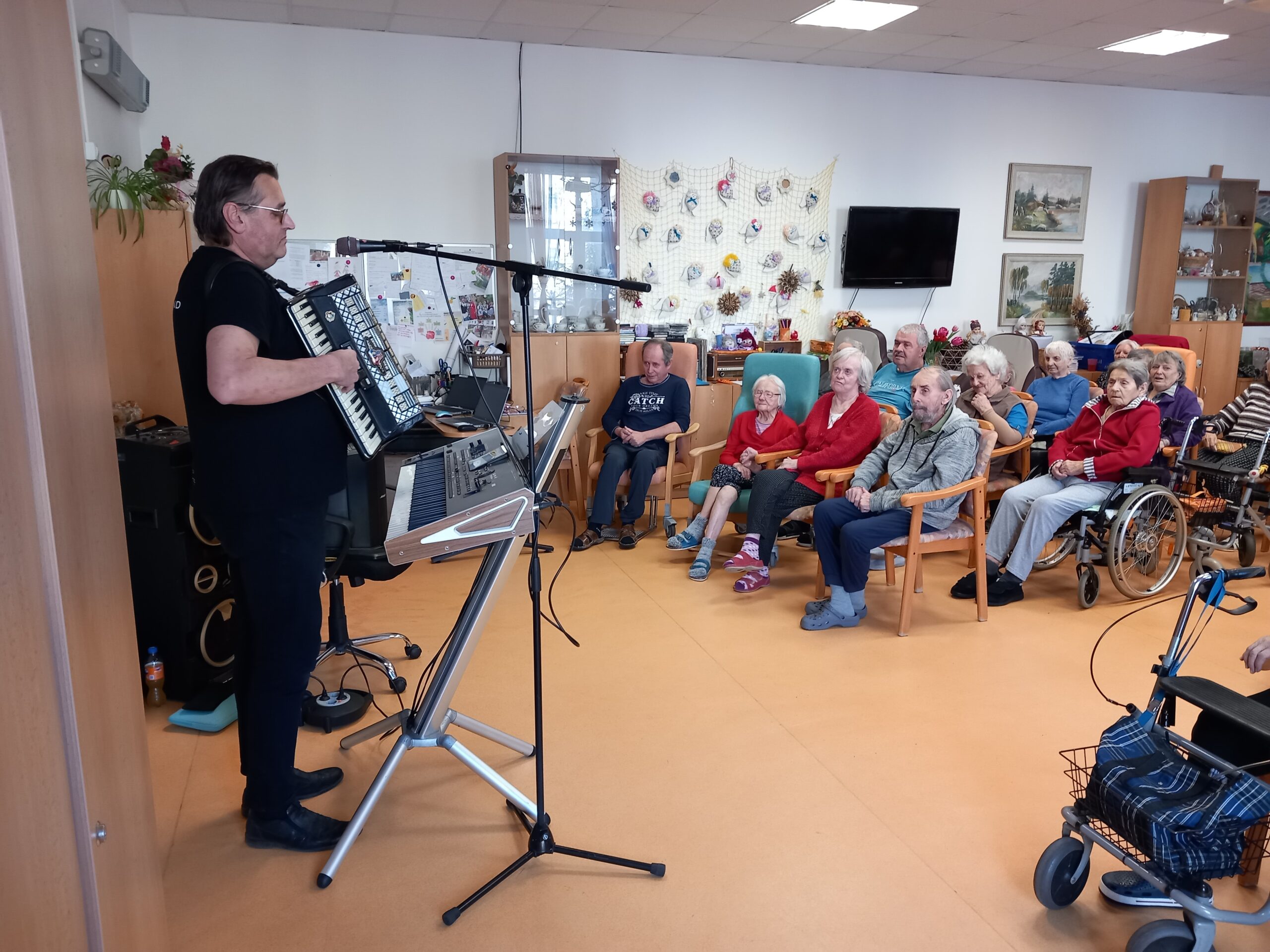 V úterý 20.1. k nám do domova zavítal náš dobře známý hudebník pan Petr Vonášek. Z jeho harmoniky se linuly notoricky známé lidové písně, které si rádi zazpívali i naši senioři. Dokonce došlo i na malý taneček. Všem se zábavné hudební odpoledne moc líbilo a těší se na další.