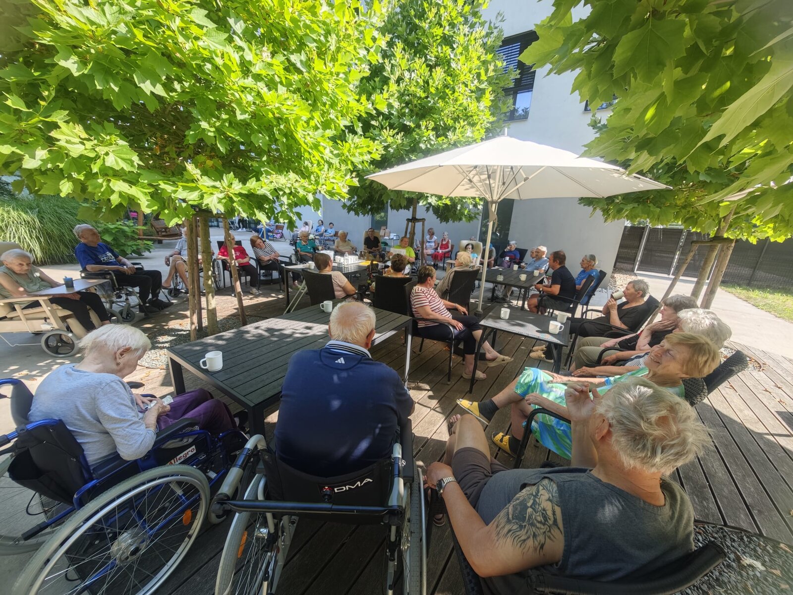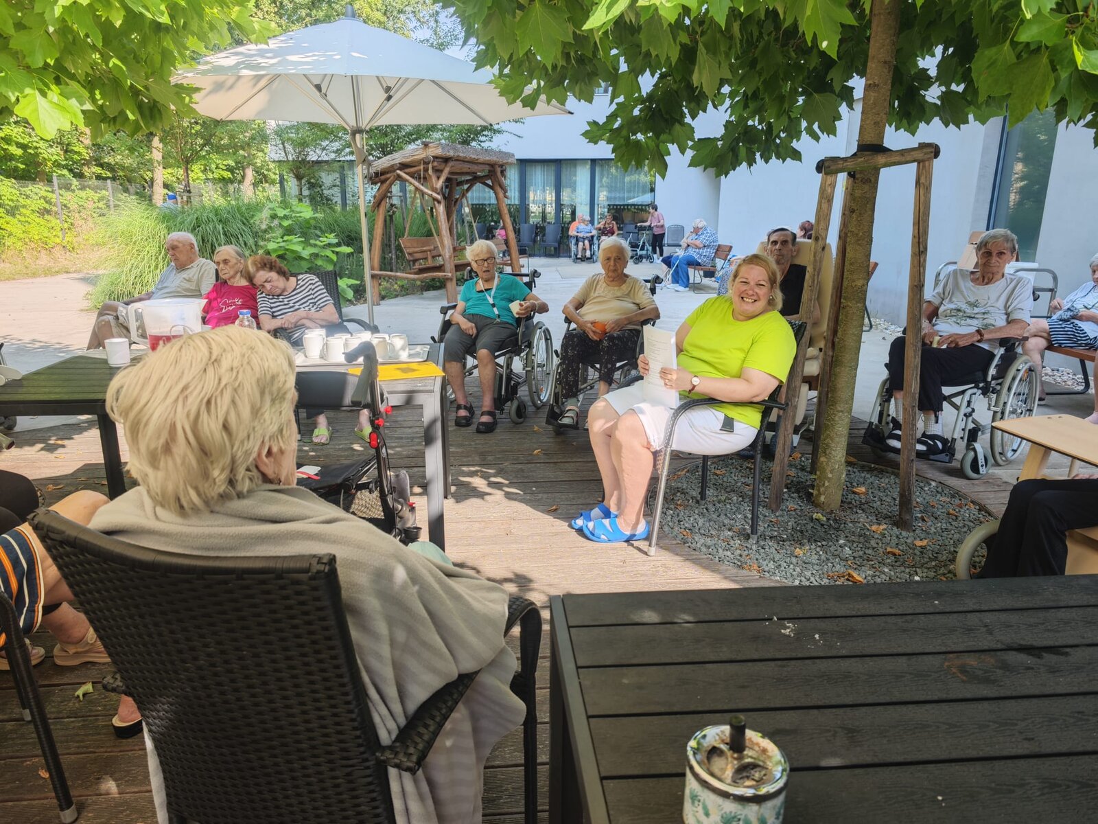 🌳 Naše zahrada se opět proměnila v místo plné smíchu, soustředění a společného přemýšlení. Klienti Senevida Pardubice si během krásného letního dne užili příjemné posezení venku, při kterém si procvičili mysl díky zábavným rébusům a hlavolamům 🧩.