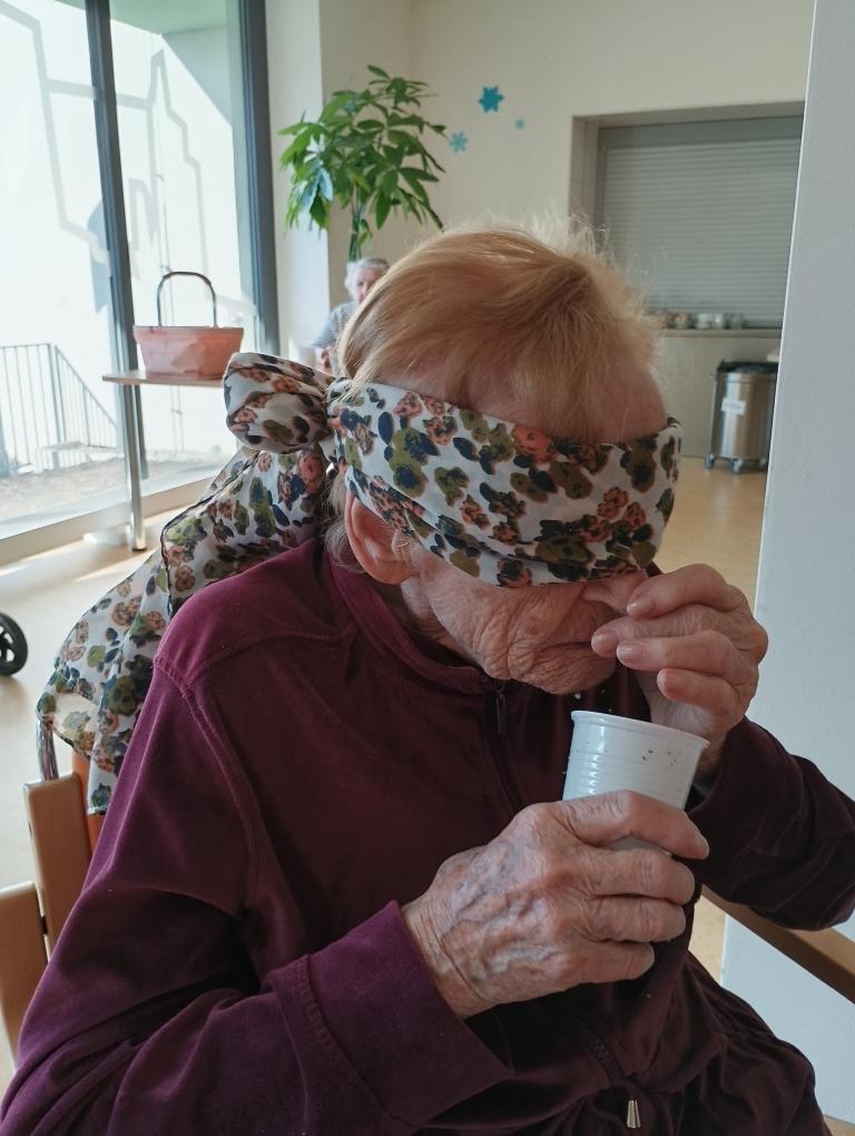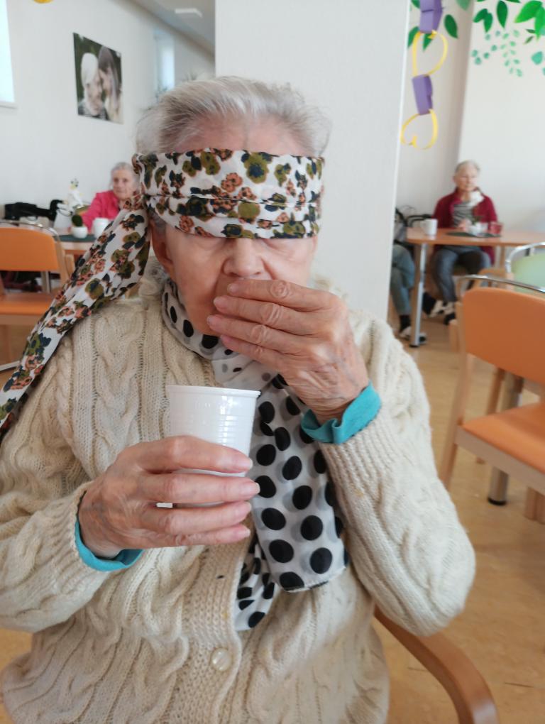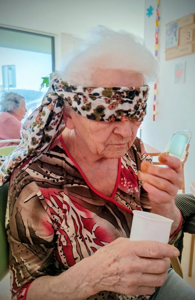 Klienti měli zavázané oči a hádali jednotlivé druhy koření podávaných v kelímkách. Aktivita přinesla mnoho úsměvů i veselých dohadů. Klienti si procvičili smysly i paměť a společné dopoledne si velmi užili.