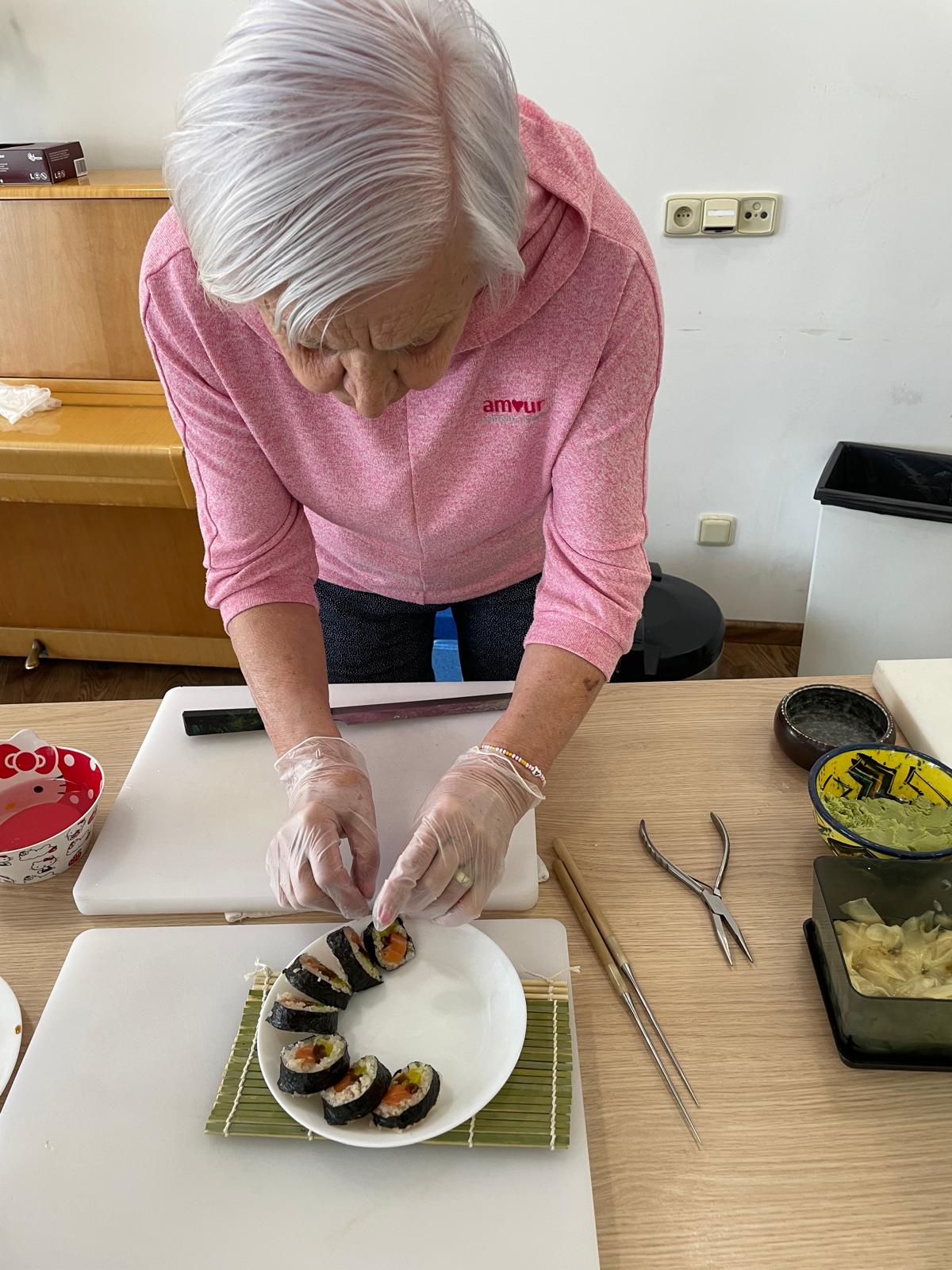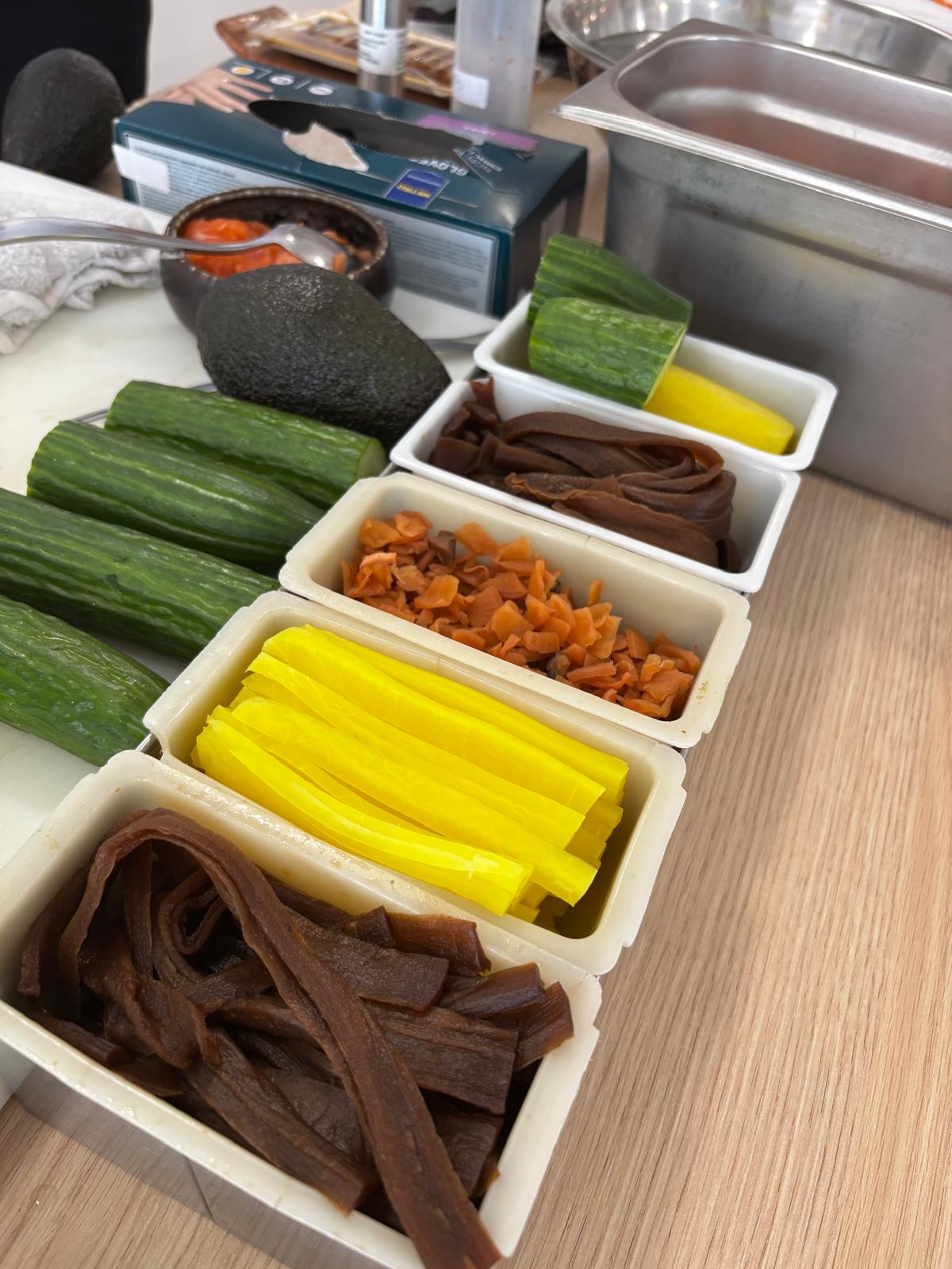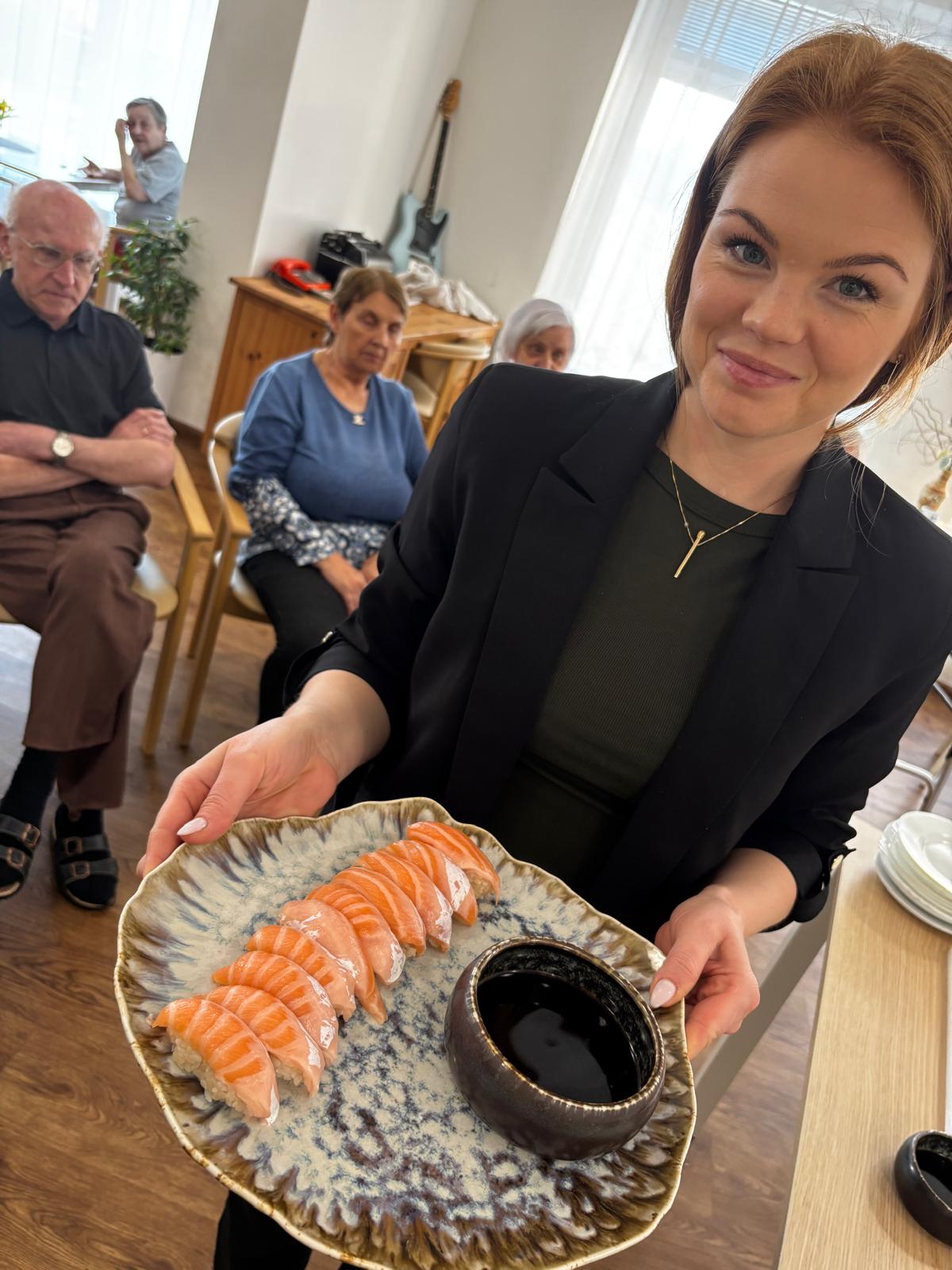 Ukázal nám, jak porcuje celého lososa, vysvětlil jaké ingredience používá, řekl nám i něco o historii sushi a naši klienti měli možnost si i sami rolování a krájení vyzkoušet. Samozřejmě bez následné ochutnávky se to neobešlo!