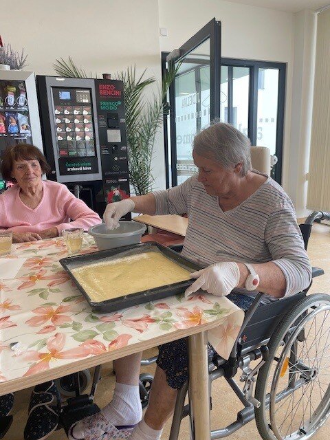 Jako již tradičně jsme se v Senevida Boskovice na konci měsíce pustili do příprav narozeninového občerstvení. Klienti si tentokrát sami upekli Raffaello koláč. Sladký kokos nám provoněl celou jídelnu a nalákal nejednoho zvědavce. Buchta se klientům velmi vydařila, těsto bylo vláčné a příjemně nasáklé smetanovým kokosem.