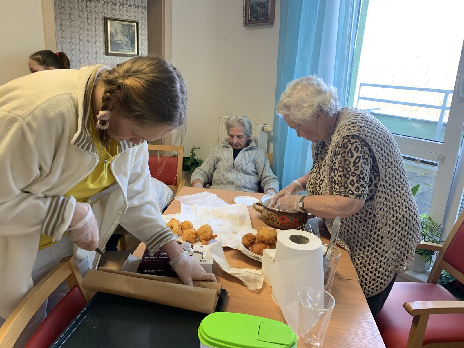 Přípravy na masopust u nás v Senevida v Českých Budějovicích proběhly. Nesmí přece chybět tradiční koblížky a zelňáky.![]()