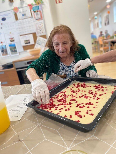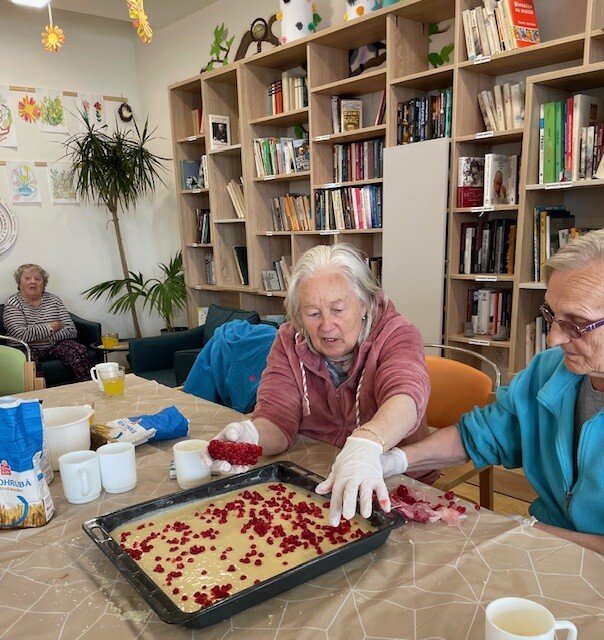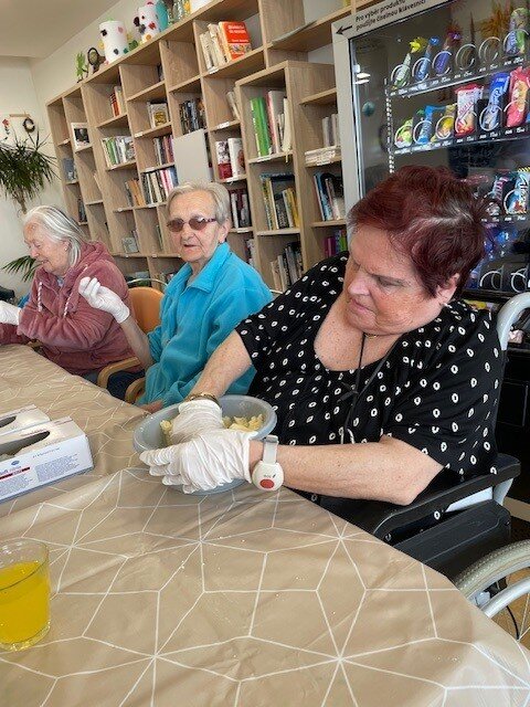 Každý poslední týden v měsíci se u nás v Senevida Boskovice nese v duchu příprav na narozeninovou oslavu. Klienti si jako dezert upekli rybízový koláč s drobenkou, který si na úplný závěr dozdobili šlehačkou. Na stole nesměly ani chybět všemi oblíbené chlebíčky, které si opět klienti připravili sami. ☺️