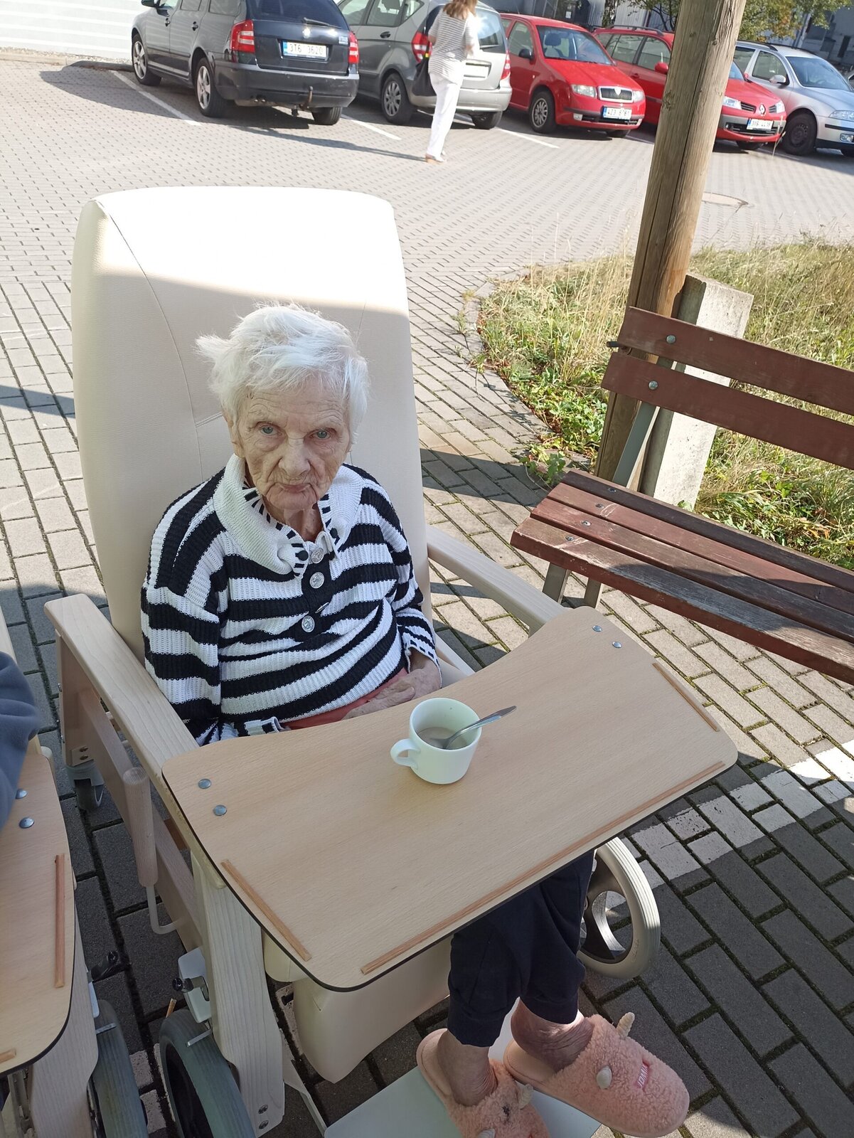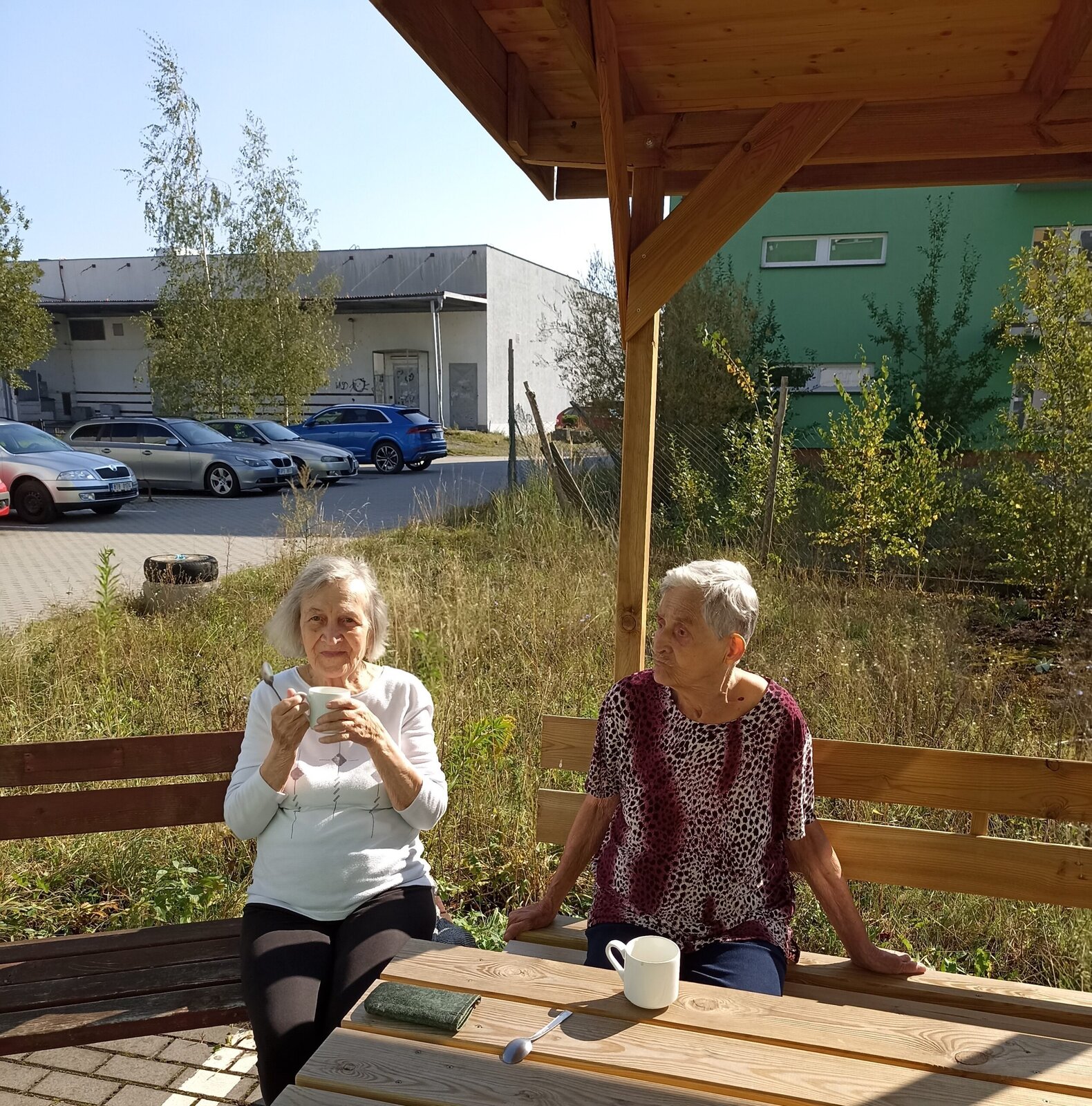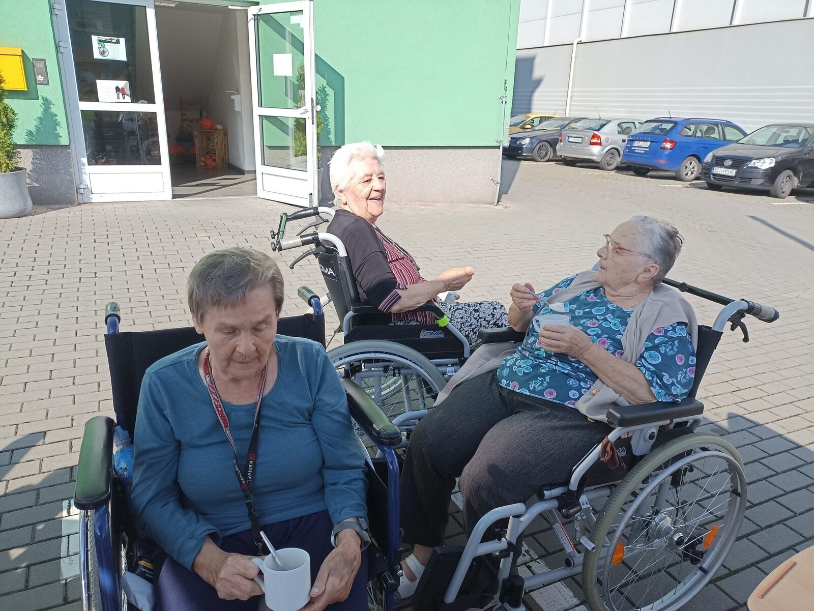 S klienty Senevida Český Těšín jsme byli venku na sluníčku, nabrat trochu energie. Klienti venku popíjeli kávu se šlehačkou a byli spokojeni.