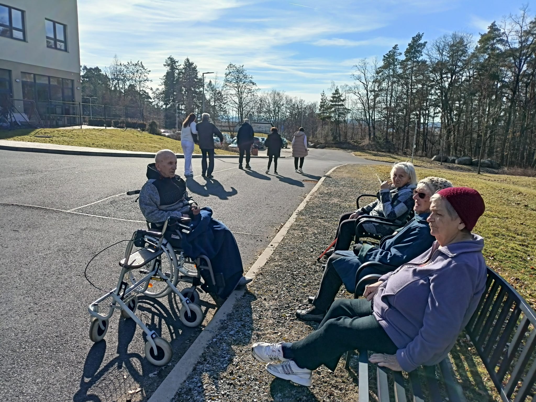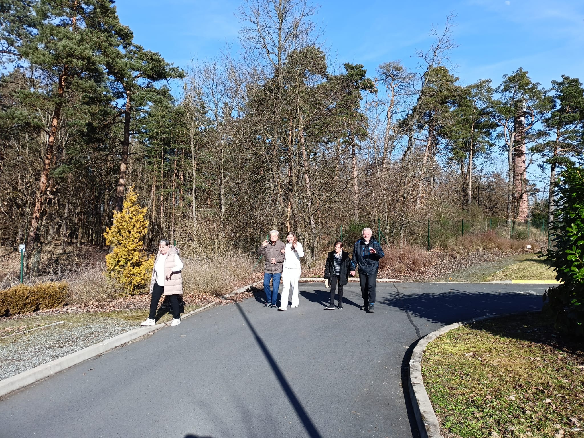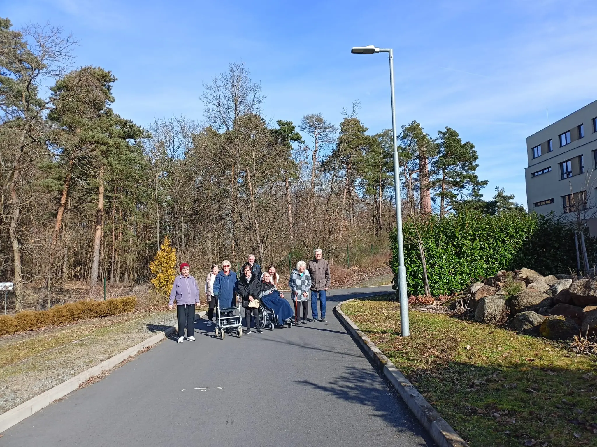 Sluneční paprsky nás dnes vylákaly ven na čerstvý vzduch. Klienti si procházku užili.