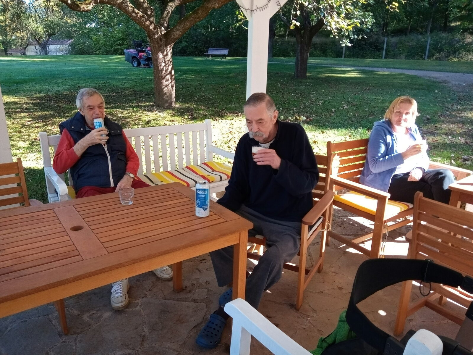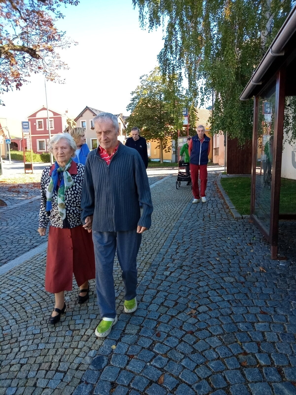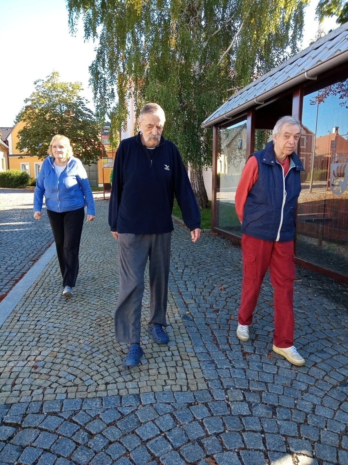 Procházky po obci Pyšely probíhají pravidelně. Ke kostelíku, do obchodu, po návsi. Všude to tu máme pěkné. Procházky poté zakončíme v našem altánu, kde si nalejeme náš národní nápoj.